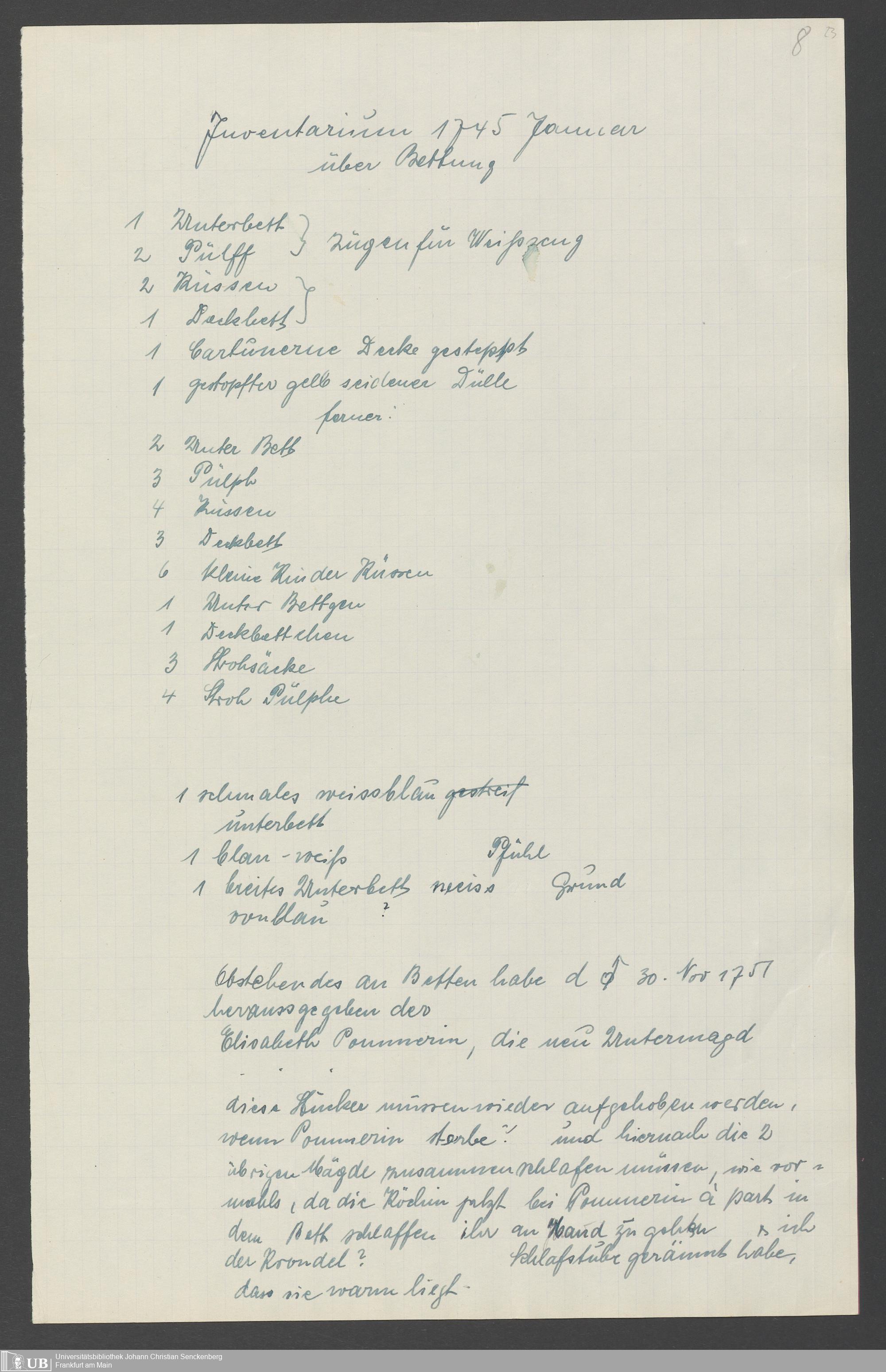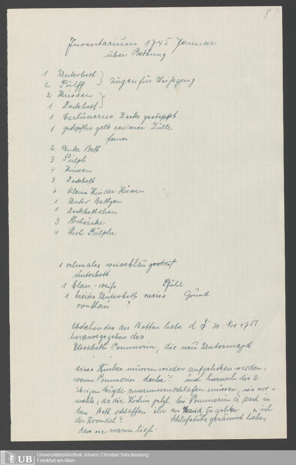 Na 31 Nachlass Johann Christian Senckenberg, 317 - Inventare über Haushaltungsgeräte, Mobilien, Instrumente, Bücher, Gold Silber, Juwelen