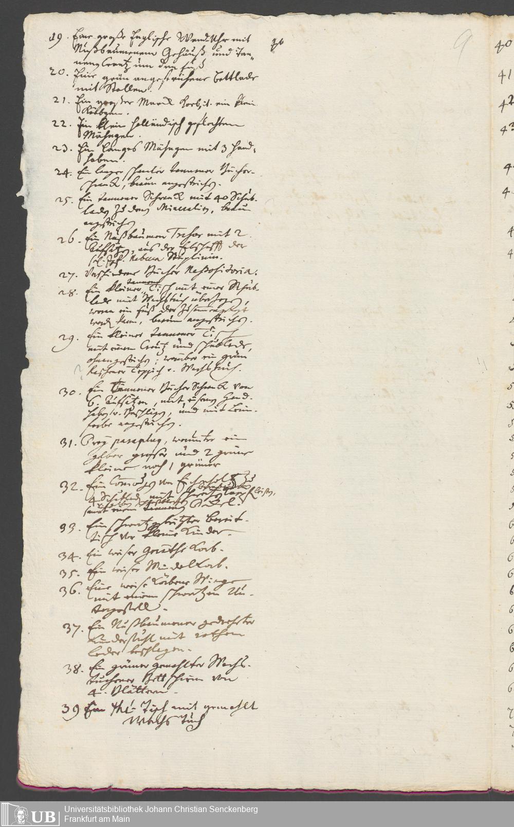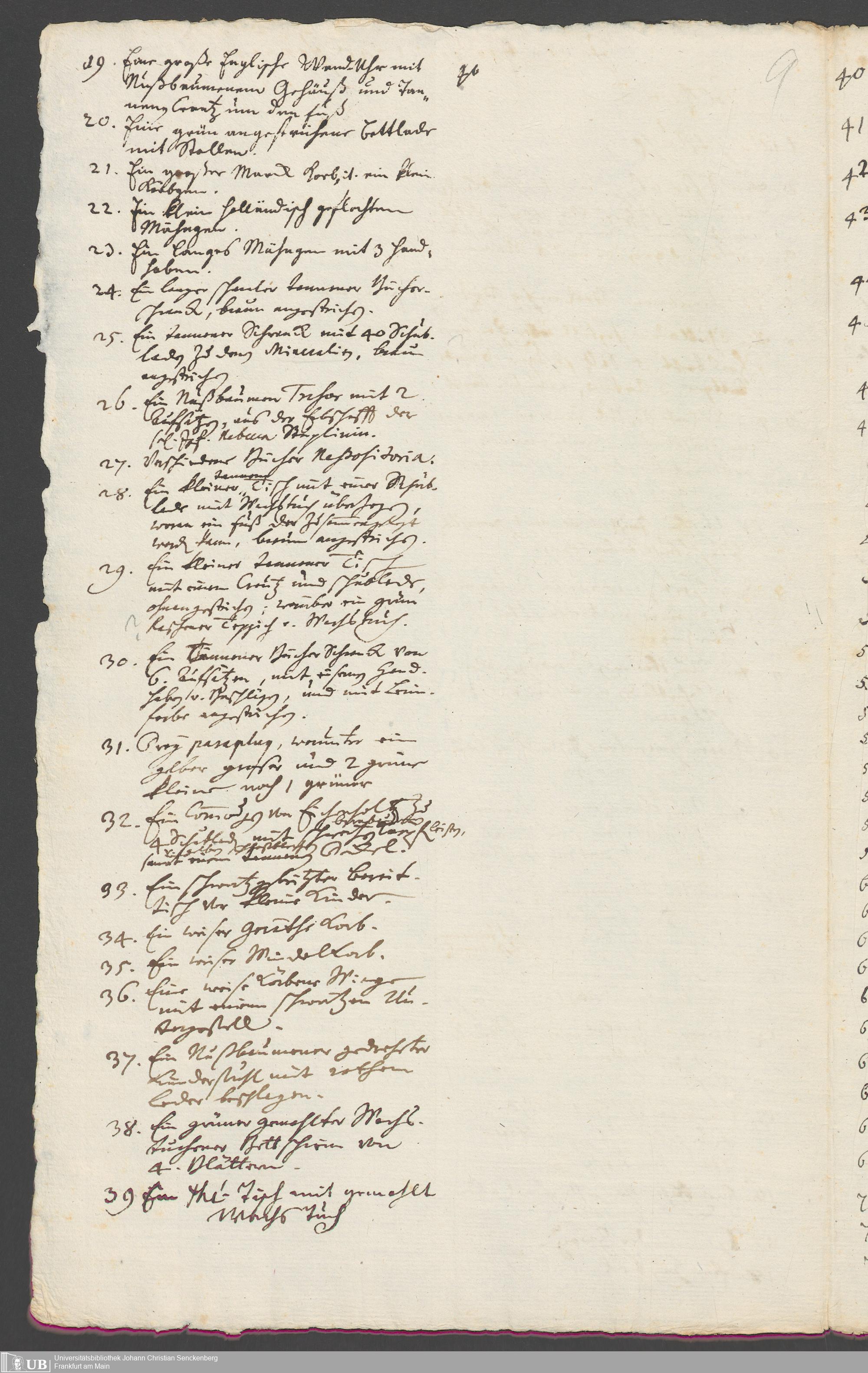 Na 31 Nachlass Johann Christian Senckenberg, 317 - Inventare über Haushaltungsgeräte, Mobilien, Instrumente, Bücher, Gold Silber, Juwelen
