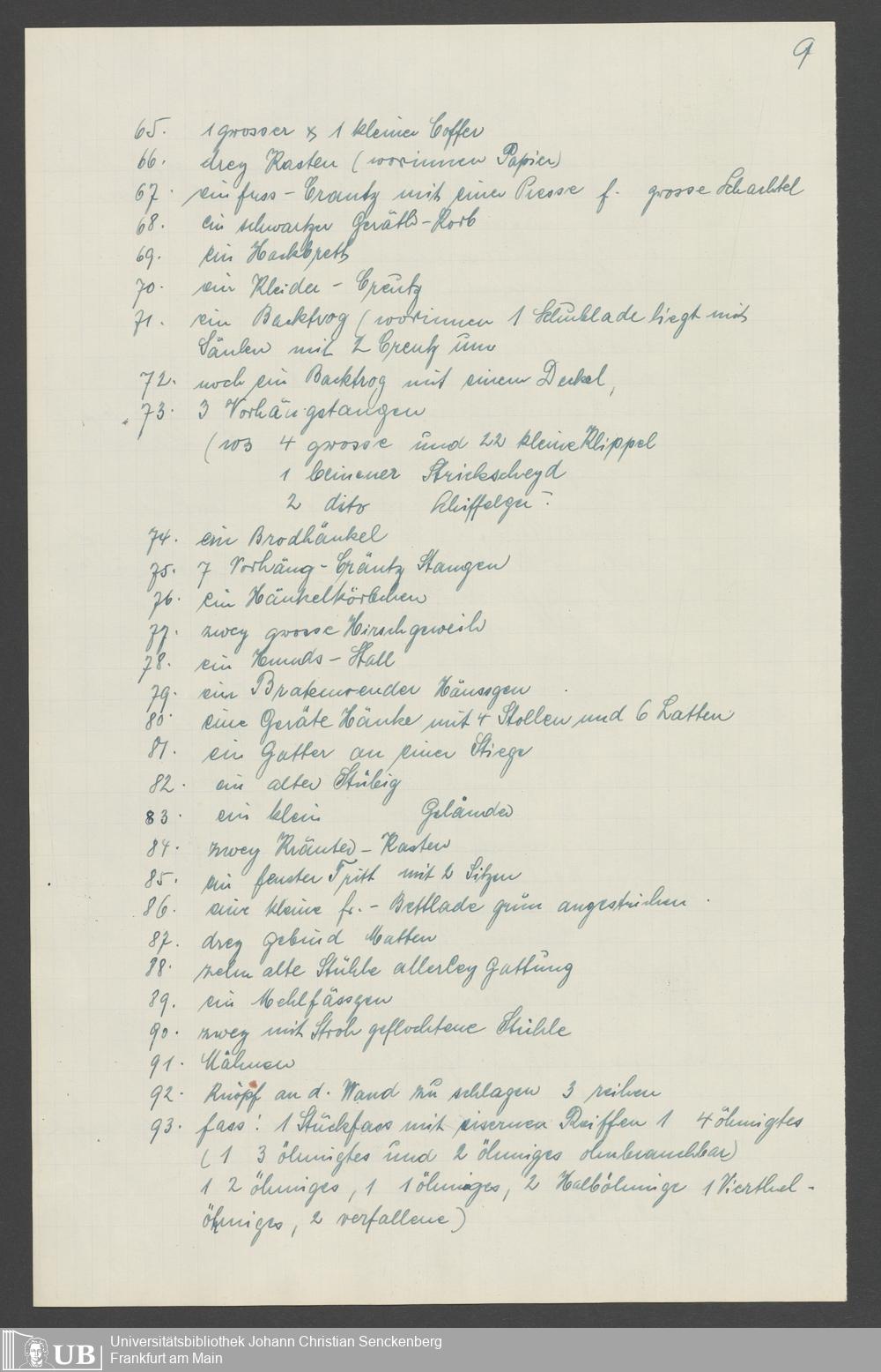 Na 31 Nachlass Johann Christian Senckenberg, 317 - Inventare über Haushaltungsgeräte, Mobilien, Instrumente, Bücher, Gold Silber, Juwelen