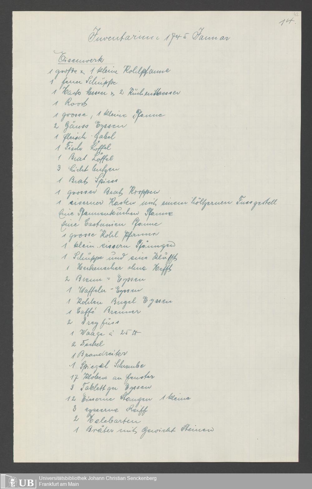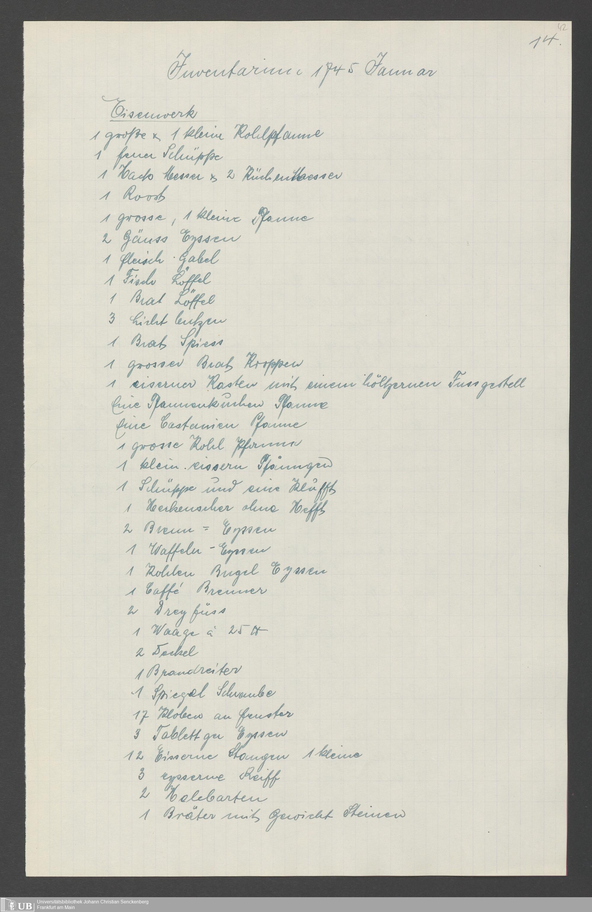Na 31 Nachlass Johann Christian Senckenberg, 317 - Inventare über Haushaltungsgeräte, Mobilien, Instrumente, Bücher, Gold Silber, Juwelen
