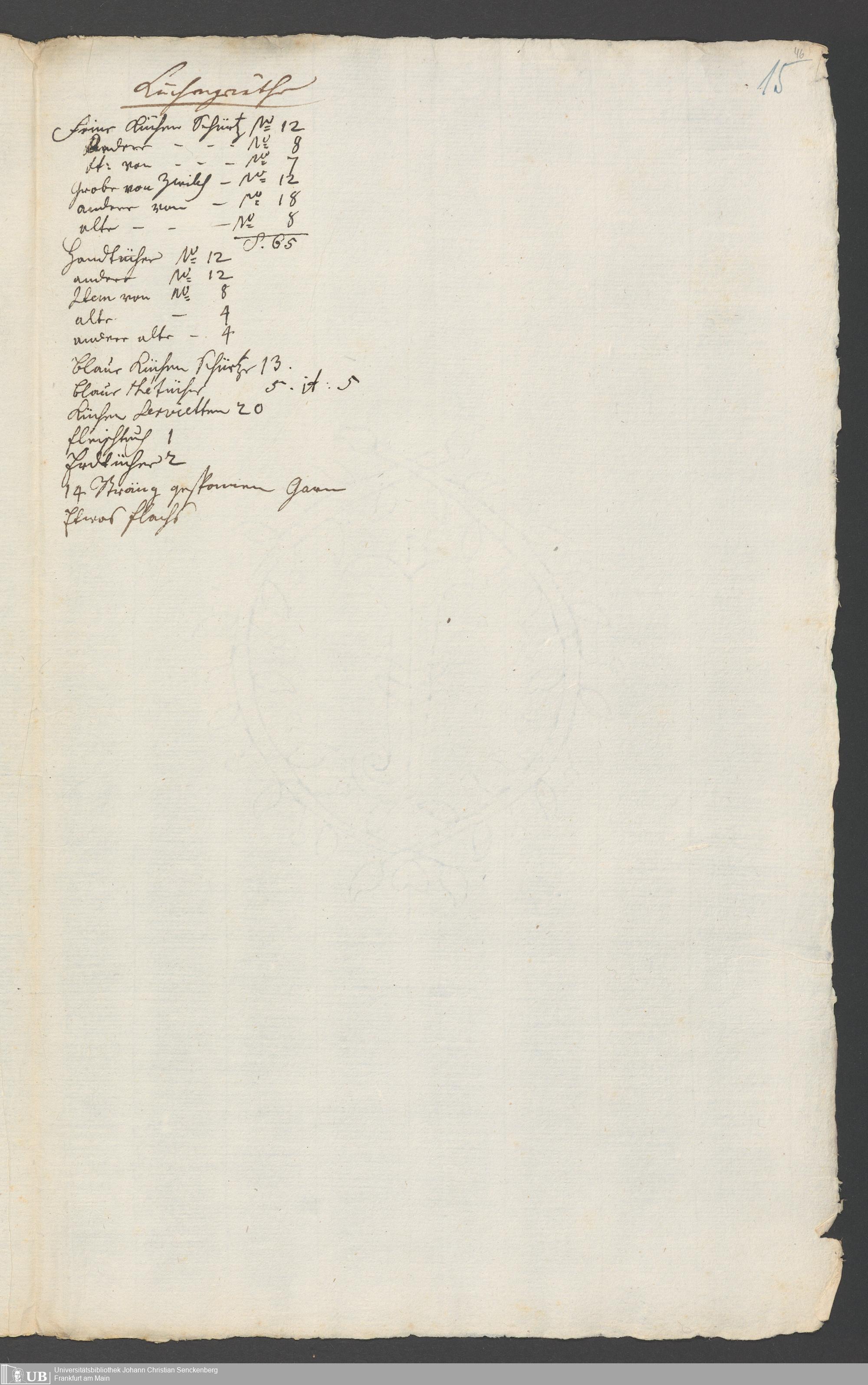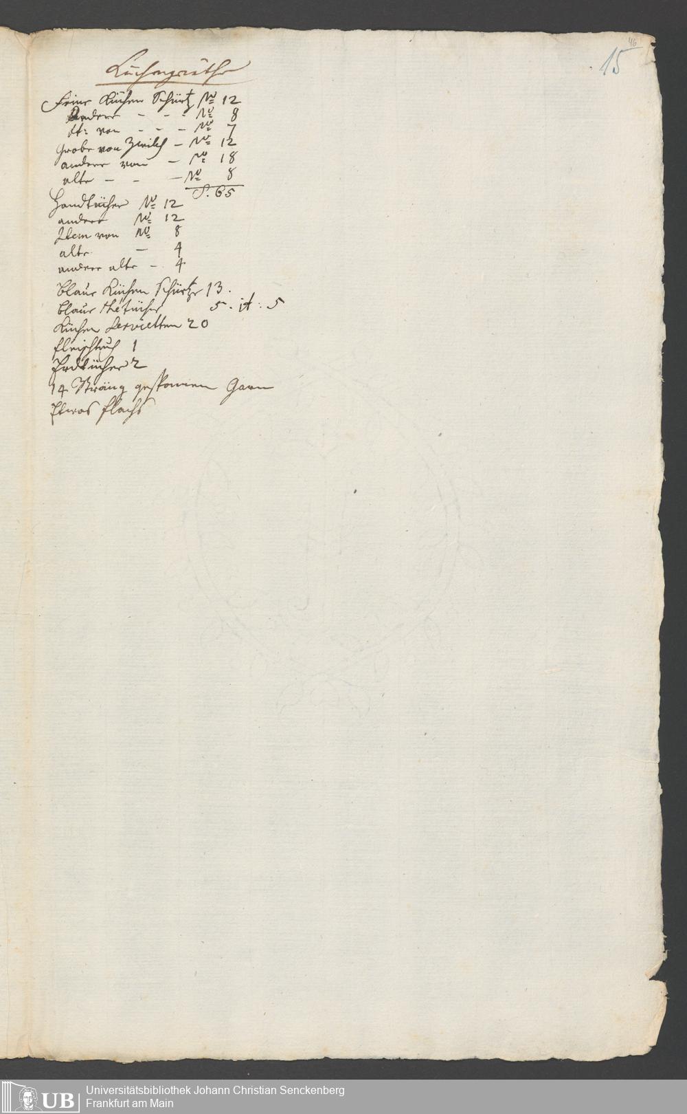 Na 31 Nachlass Johann Christian Senckenberg, 317 - Inventare über Haushaltungsgeräte, Mobilien, Instrumente, Bücher, Gold Silber, Juwelen