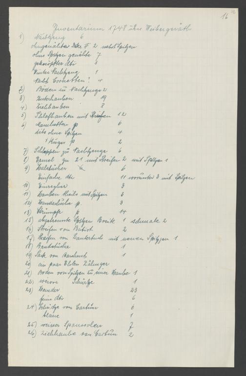 Na 31 Nachlass Johann Christian Senckenberg, 317 - Inventare über Haushaltungsgeräte, Mobilien, Instrumente, Bücher, Gold Silber, Juwelen