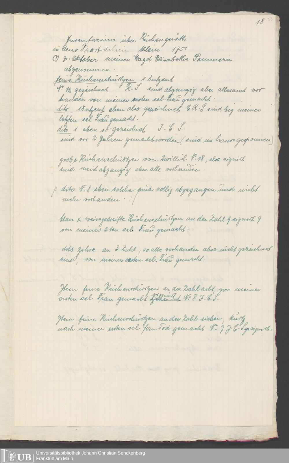Na 31 Nachlass Johann Christian Senckenberg, 317 - Inventare über Haushaltungsgeräte, Mobilien, Instrumente, Bücher, Gold Silber, Juwelen