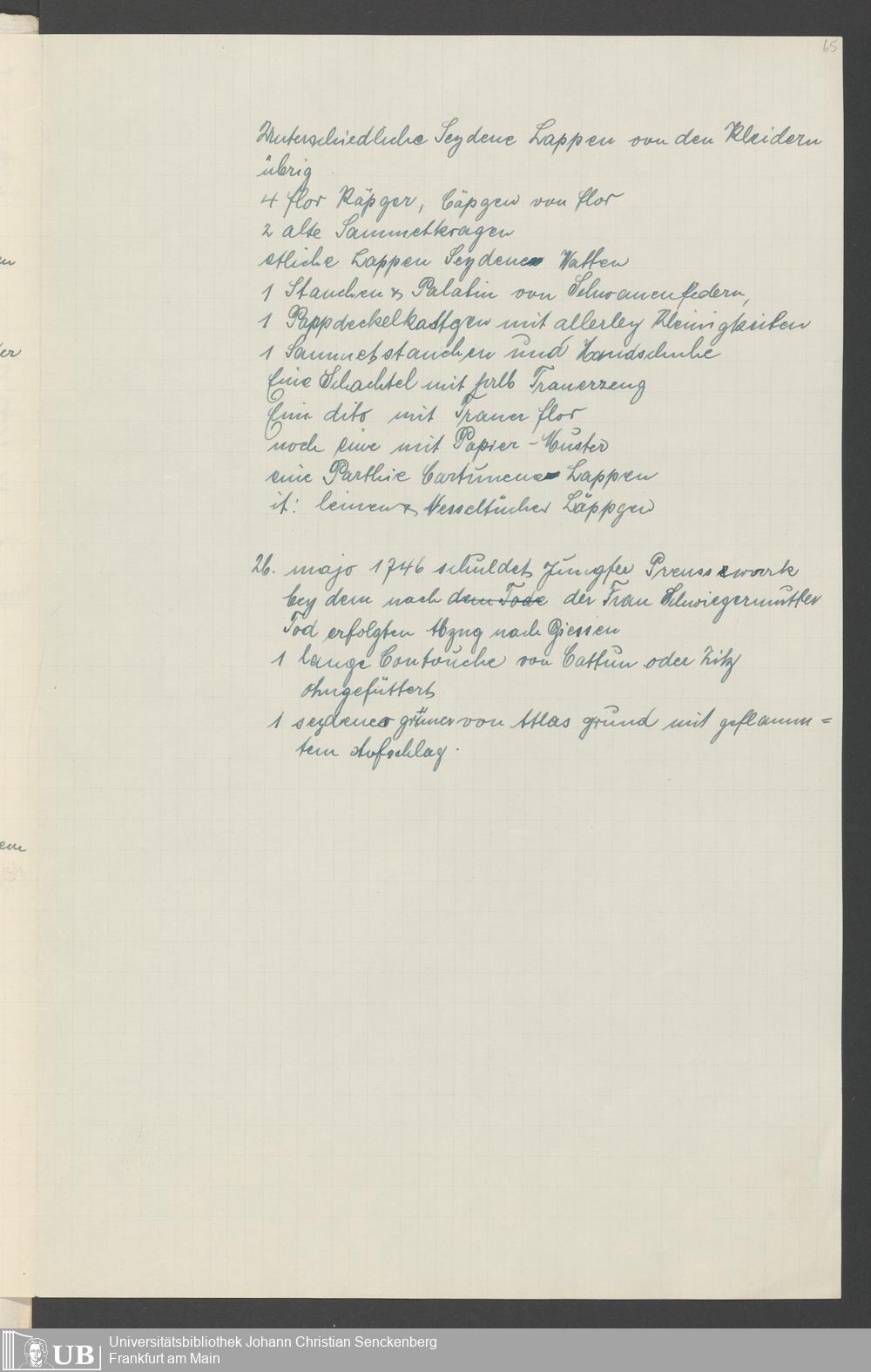 Na 31 Nachlass Johann Christian Senckenberg, 317 - Inventare über Haushaltungsgeräte, Mobilien, Instrumente, Bücher, Gold Silber, Juwelen
