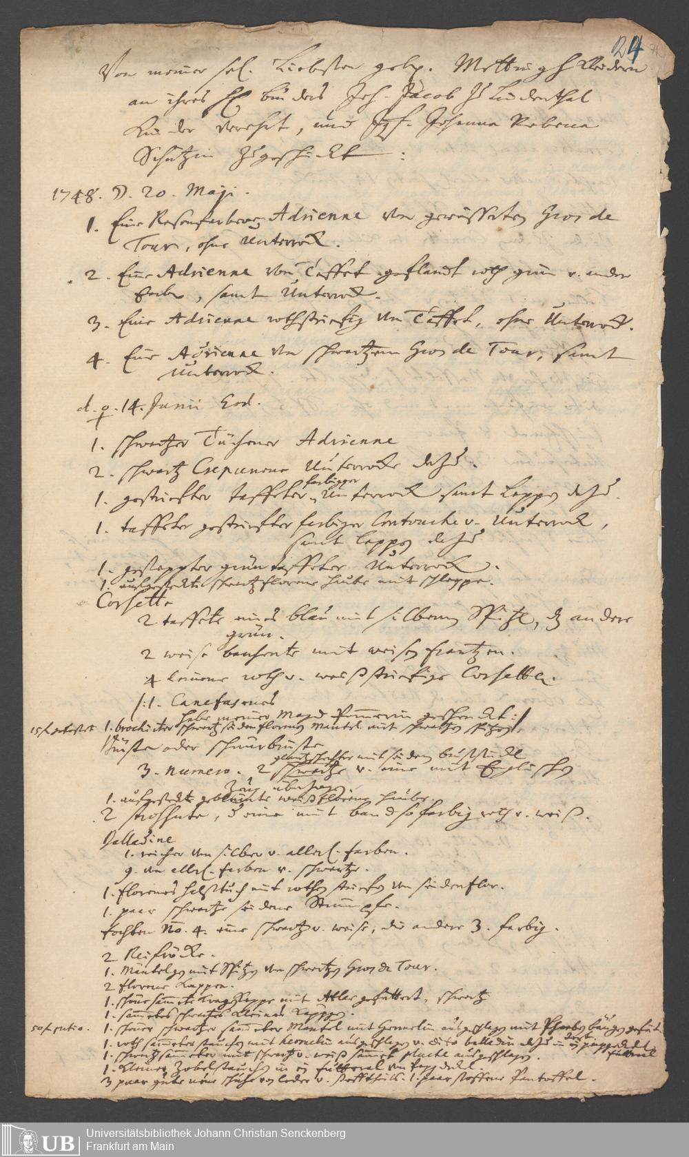 Na 31 Nachlass Johann Christian Senckenberg, 317 - Inventare über Haushaltungsgeräte, Mobilien, Instrumente, Bücher, Gold Silber, Juwelen