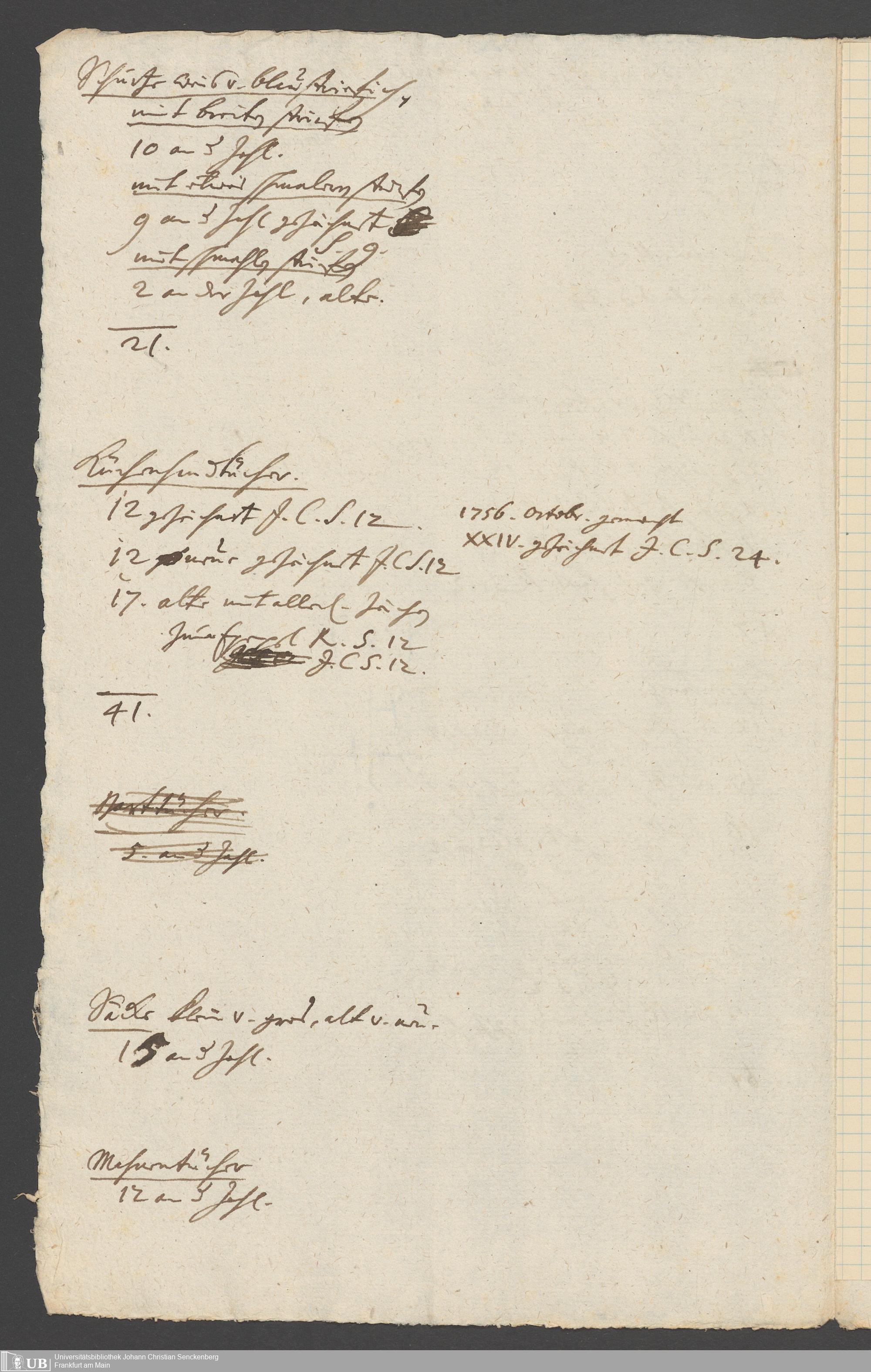 Na 31 Nachlass Johann Christian Senckenberg, 317 - Inventare über Haushaltungsgeräte, Mobilien, Instrumente, Bücher, Gold Silber, Juwelen