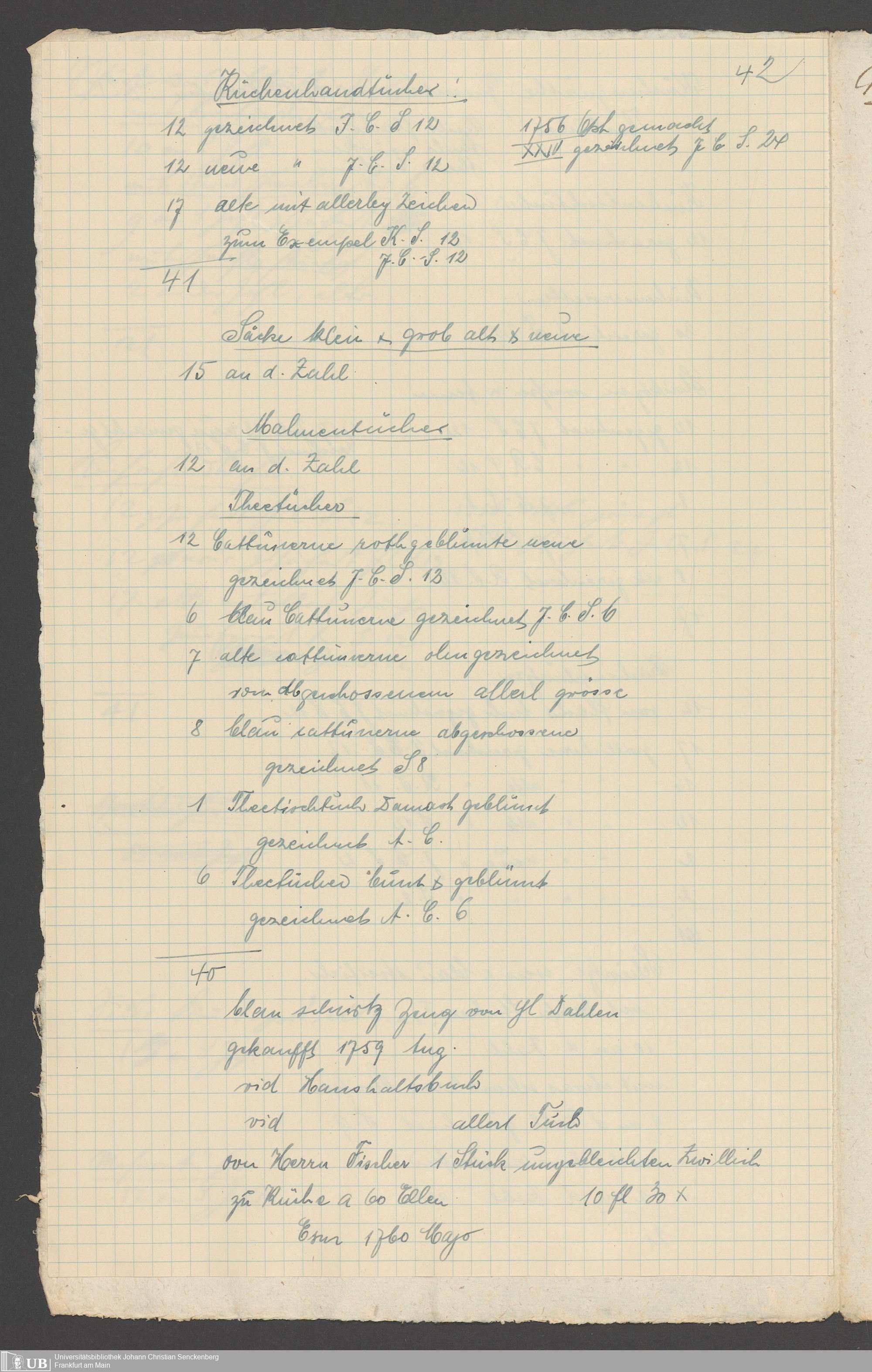 Na 31 Nachlass Johann Christian Senckenberg, 317 - Inventare über Haushaltungsgeräte, Mobilien, Instrumente, Bücher, Gold Silber, Juwelen