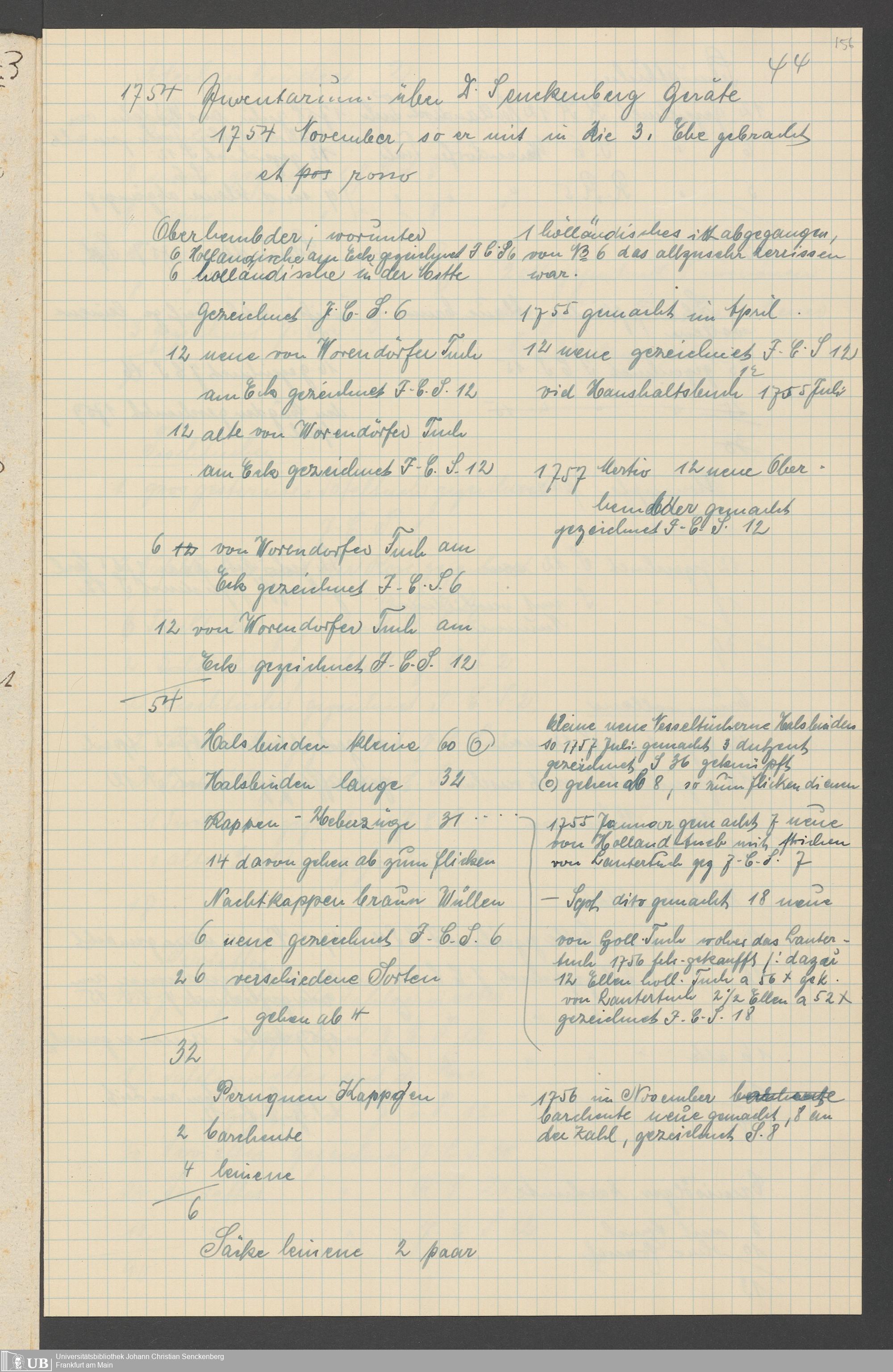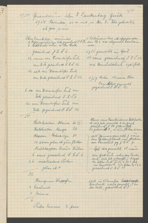 Na 31 Nachlass Johann Christian Senckenberg, 317 - Inventare über Haushaltungsgeräte, Mobilien, Instrumente, Bücher, Gold Silber, Juwelen