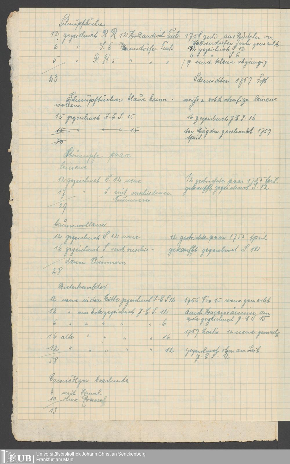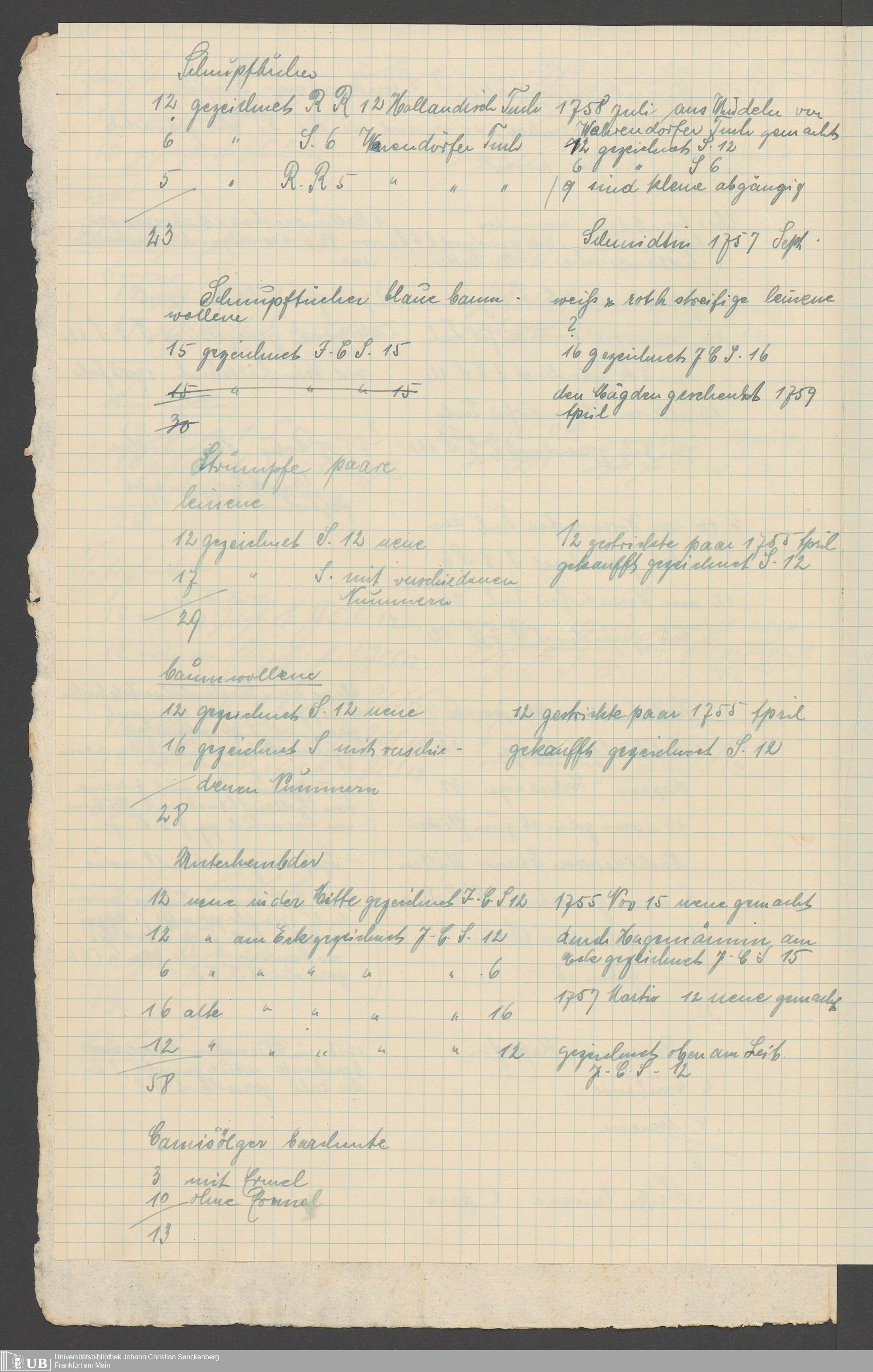 Na 31 Nachlass Johann Christian Senckenberg, 317 - Inventare über Haushaltungsgeräte, Mobilien, Instrumente, Bücher, Gold Silber, Juwelen