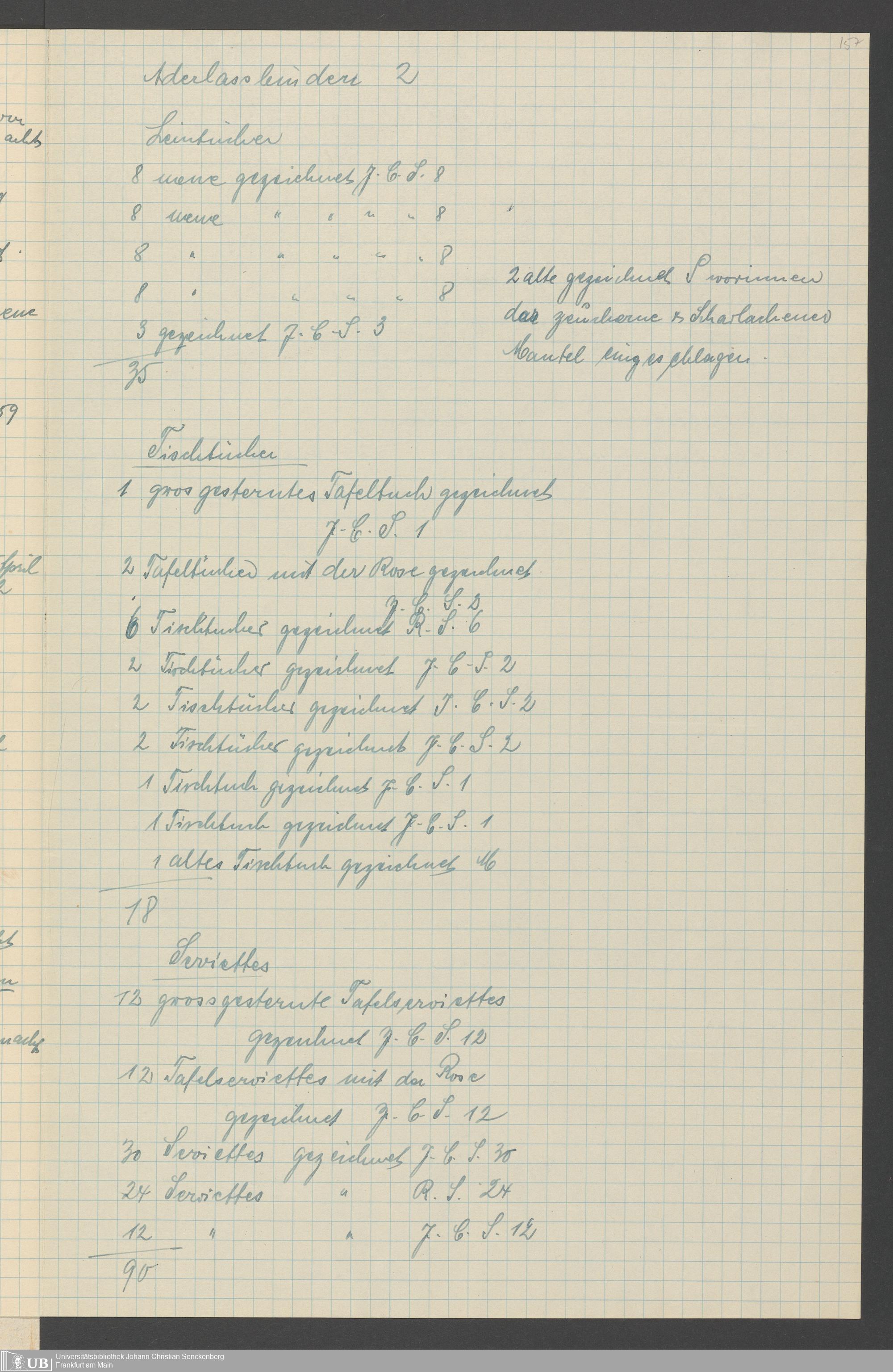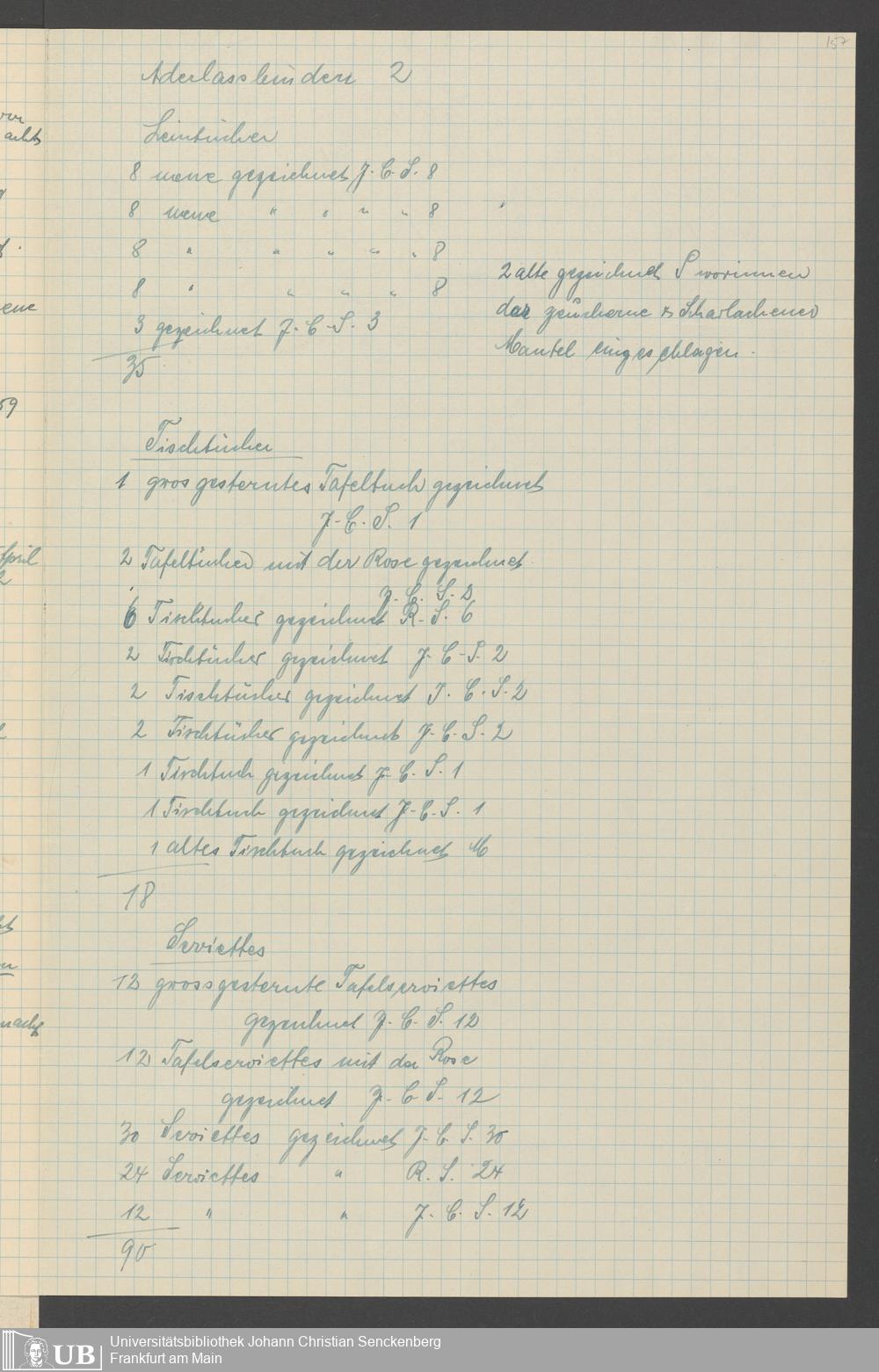 Na 31 Nachlass Johann Christian Senckenberg, 317 - Inventare über Haushaltungsgeräte, Mobilien, Instrumente, Bücher, Gold Silber, Juwelen