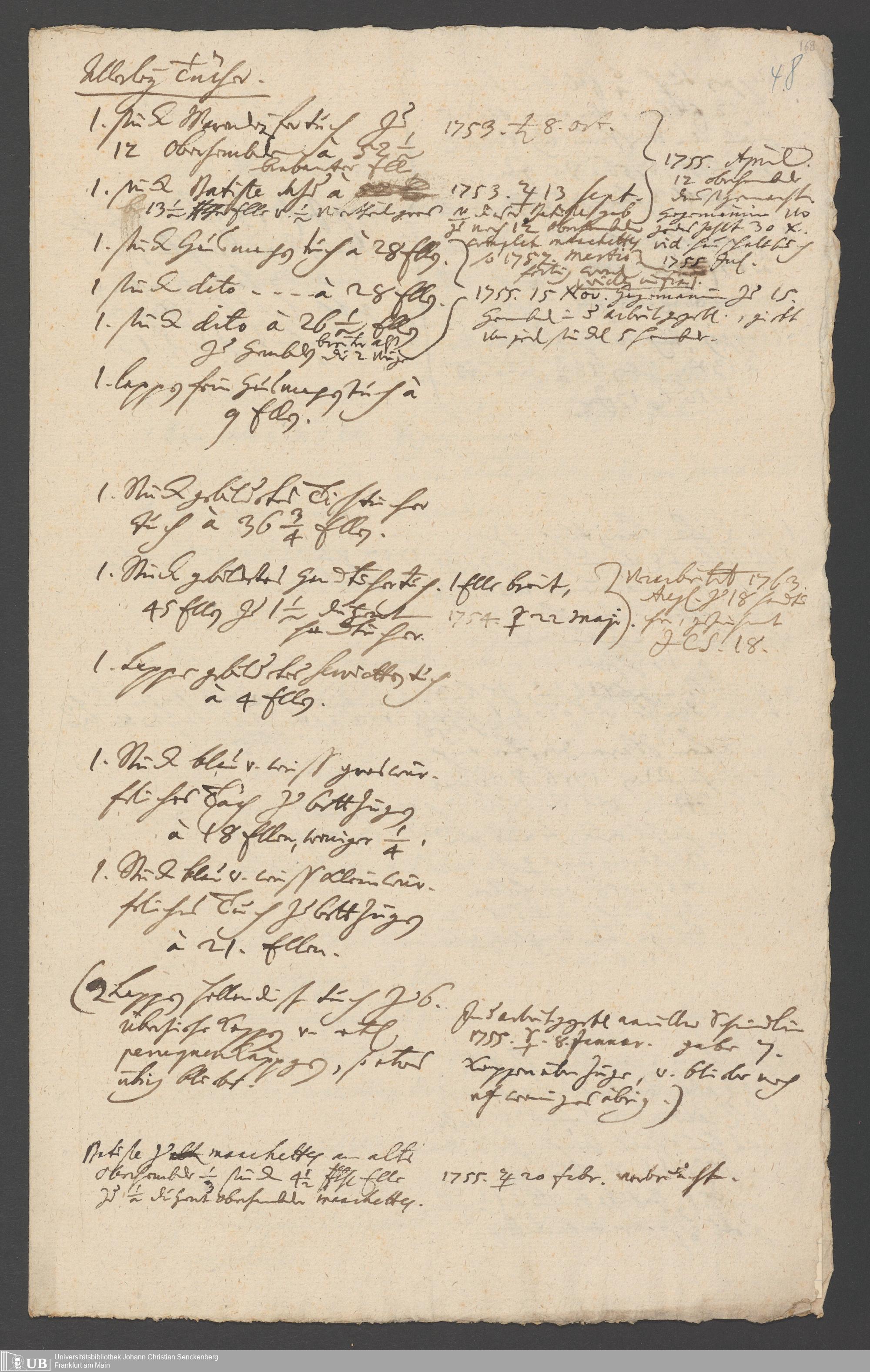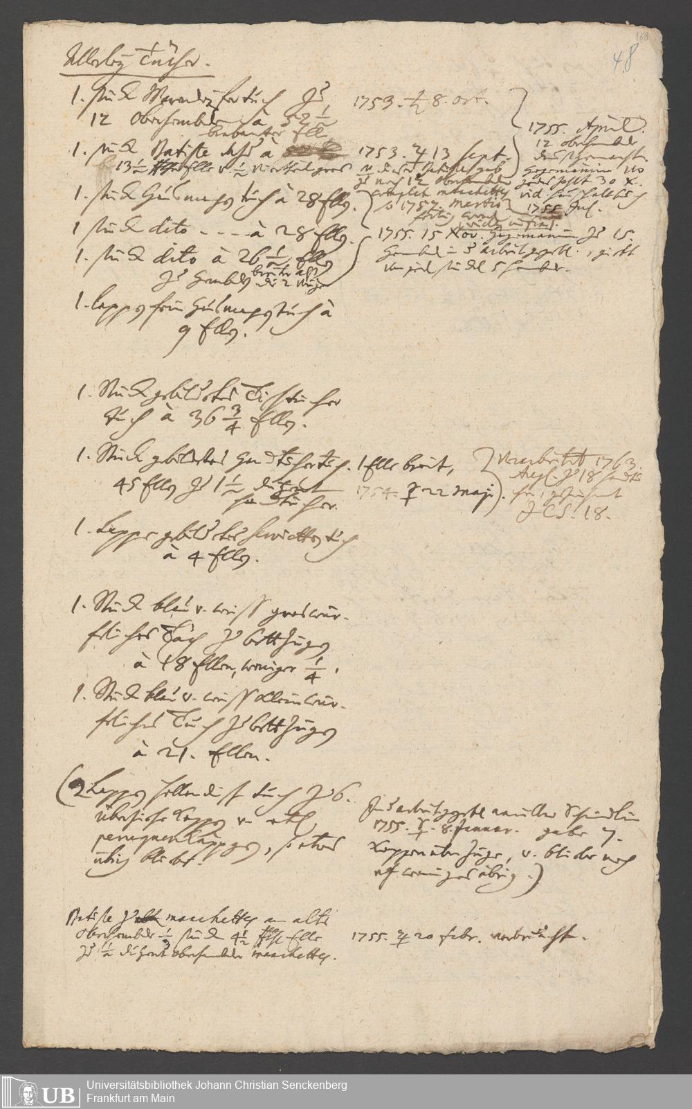 Na 31 Nachlass Johann Christian Senckenberg, 317 - Inventare über Haushaltungsgeräte, Mobilien, Instrumente, Bücher, Gold Silber, Juwelen