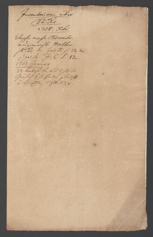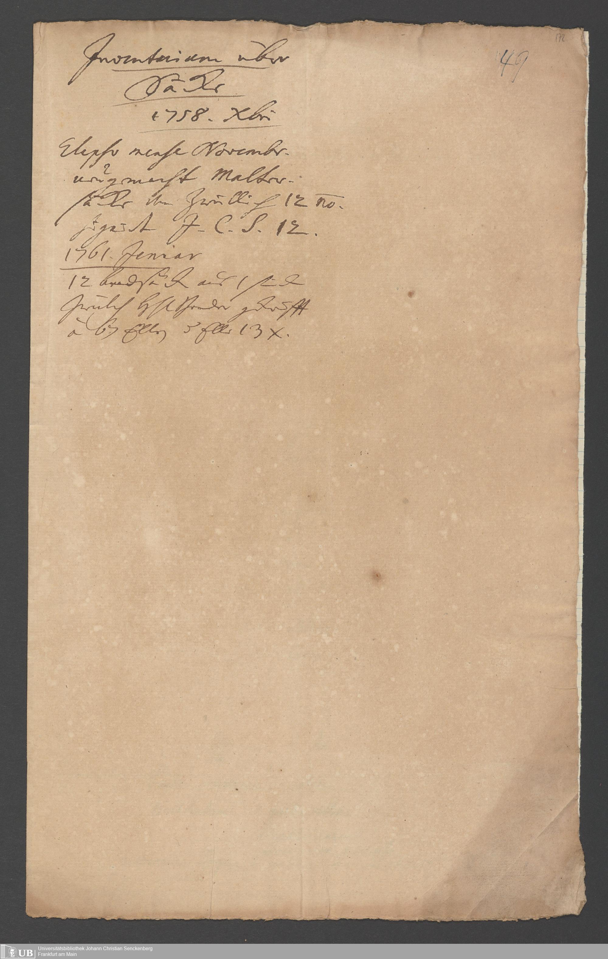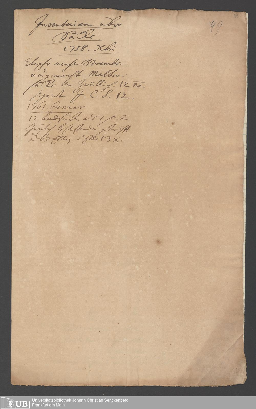 Na 31 Nachlass Johann Christian Senckenberg, 317 - Inventare über Haushaltungsgeräte, Mobilien, Instrumente, Bücher, Gold Silber, Juwelen
