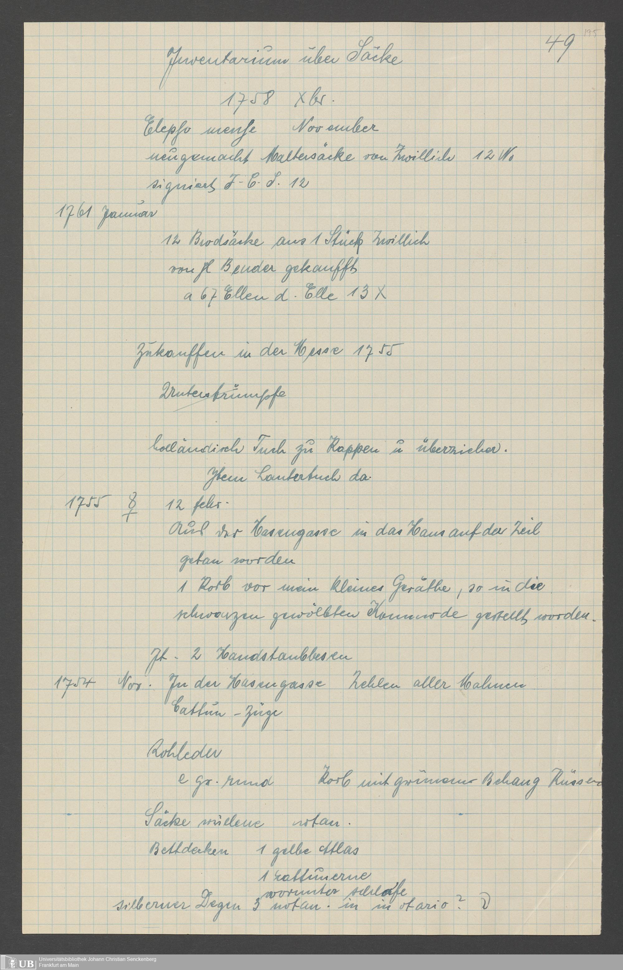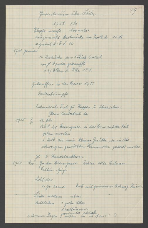 Na 31 Nachlass Johann Christian Senckenberg, 317 - Inventare über Haushaltungsgeräte, Mobilien, Instrumente, Bücher, Gold Silber, Juwelen