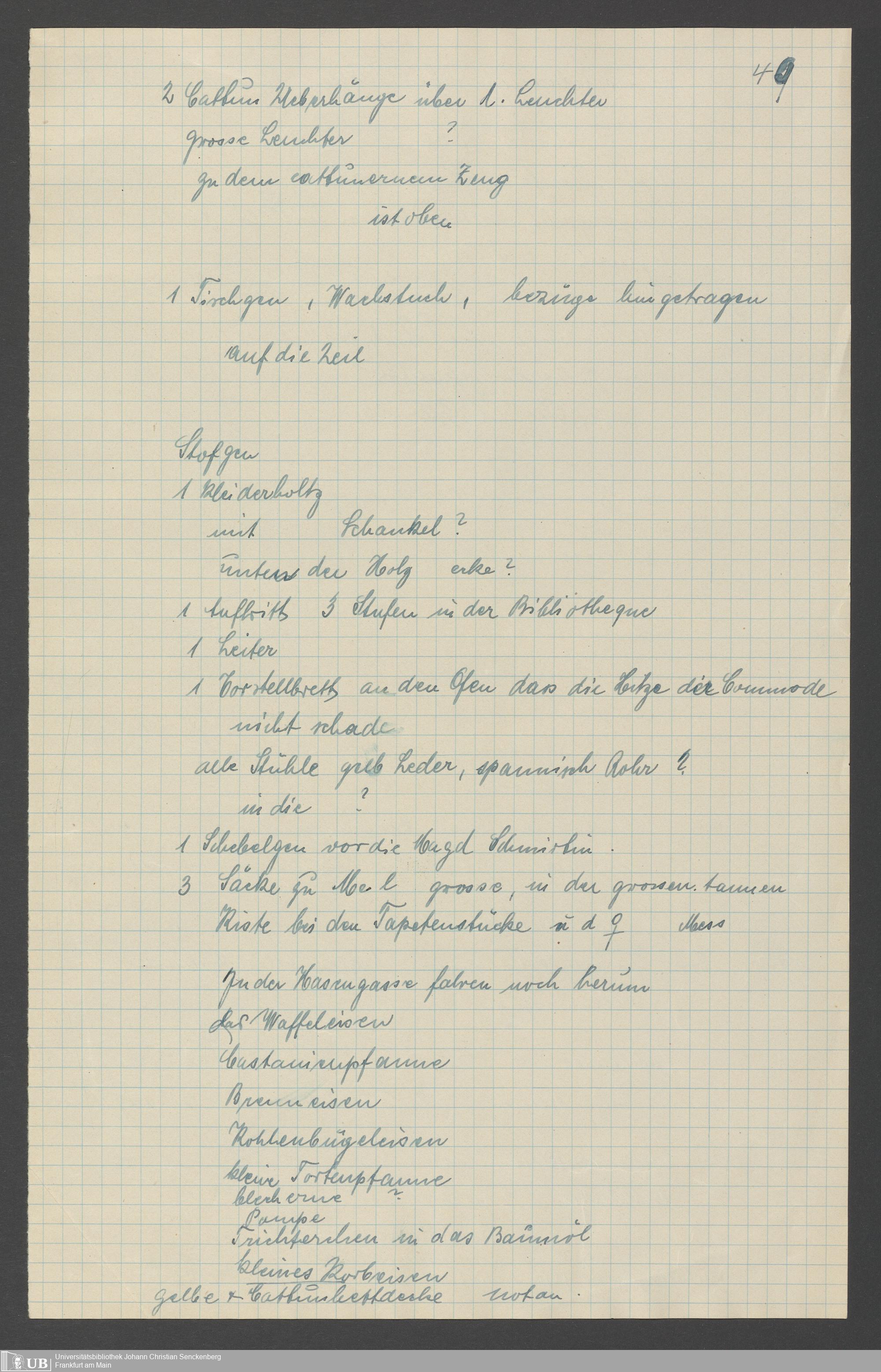 Na 31 Nachlass Johann Christian Senckenberg, 317 - Inventare über Haushaltungsgeräte, Mobilien, Instrumente, Bücher, Gold Silber, Juwelen