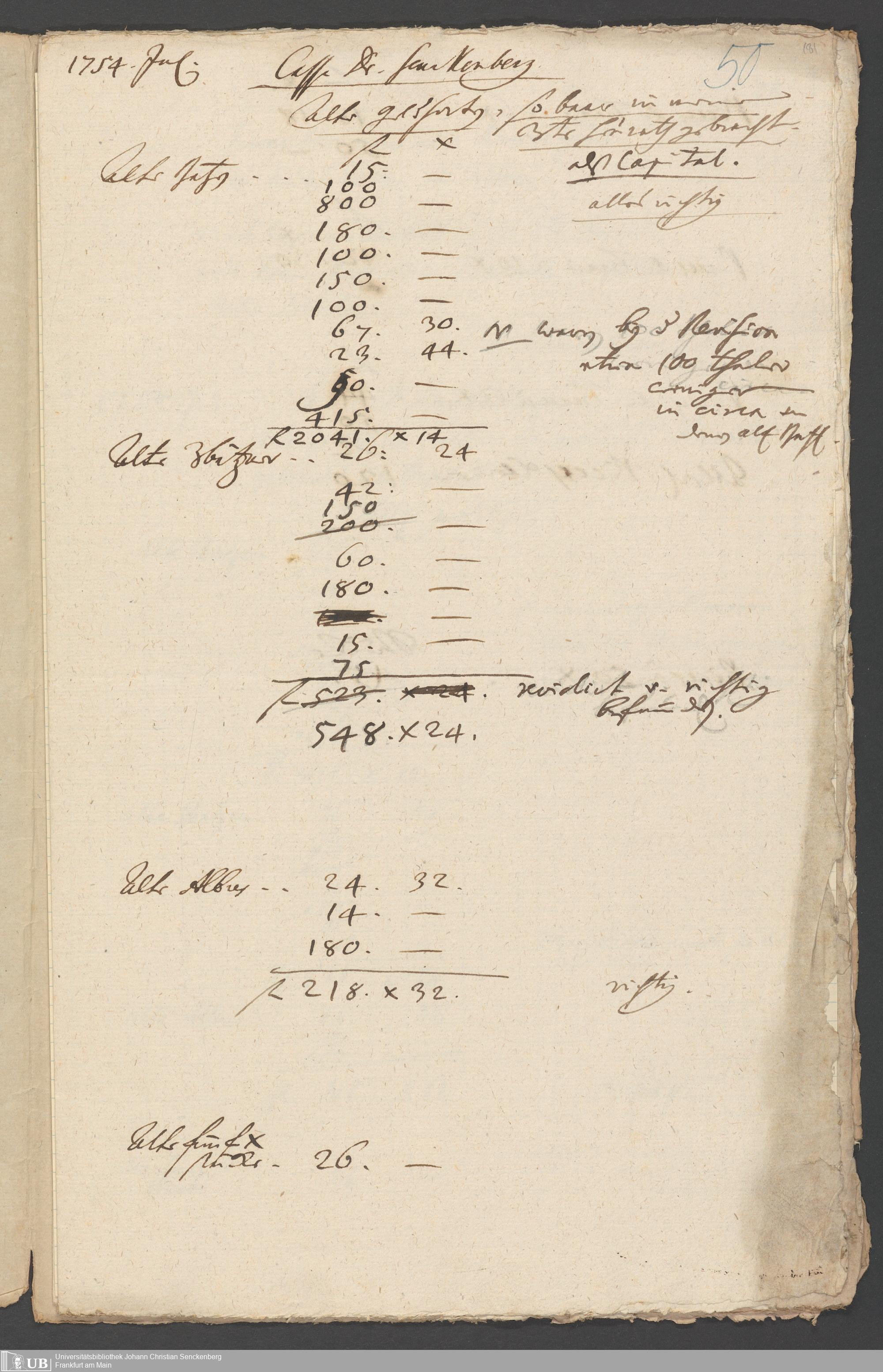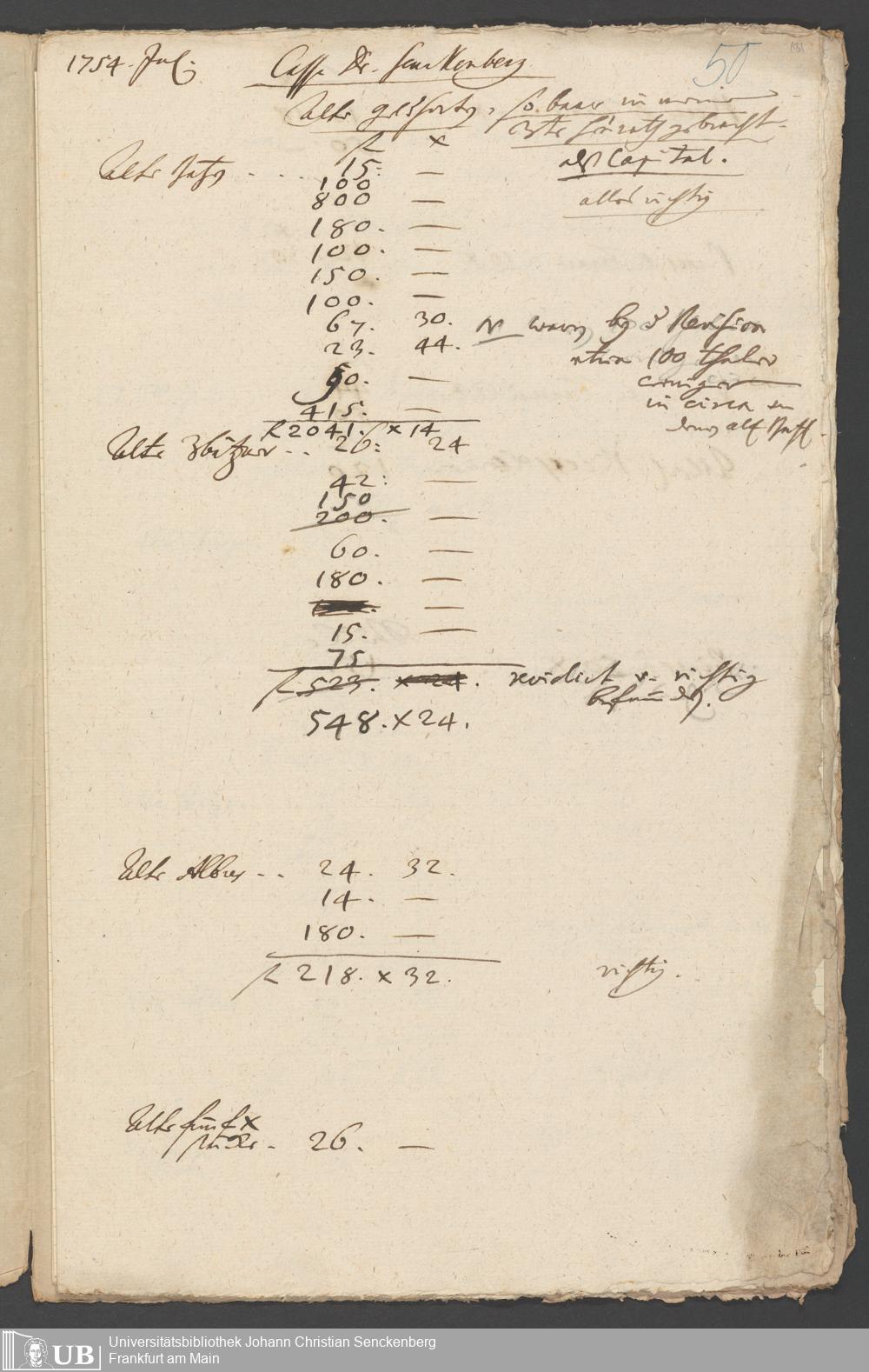Na 31 Nachlass Johann Christian Senckenberg, 317 - Inventare über Haushaltungsgeräte, Mobilien, Instrumente, Bücher, Gold Silber, Juwelen