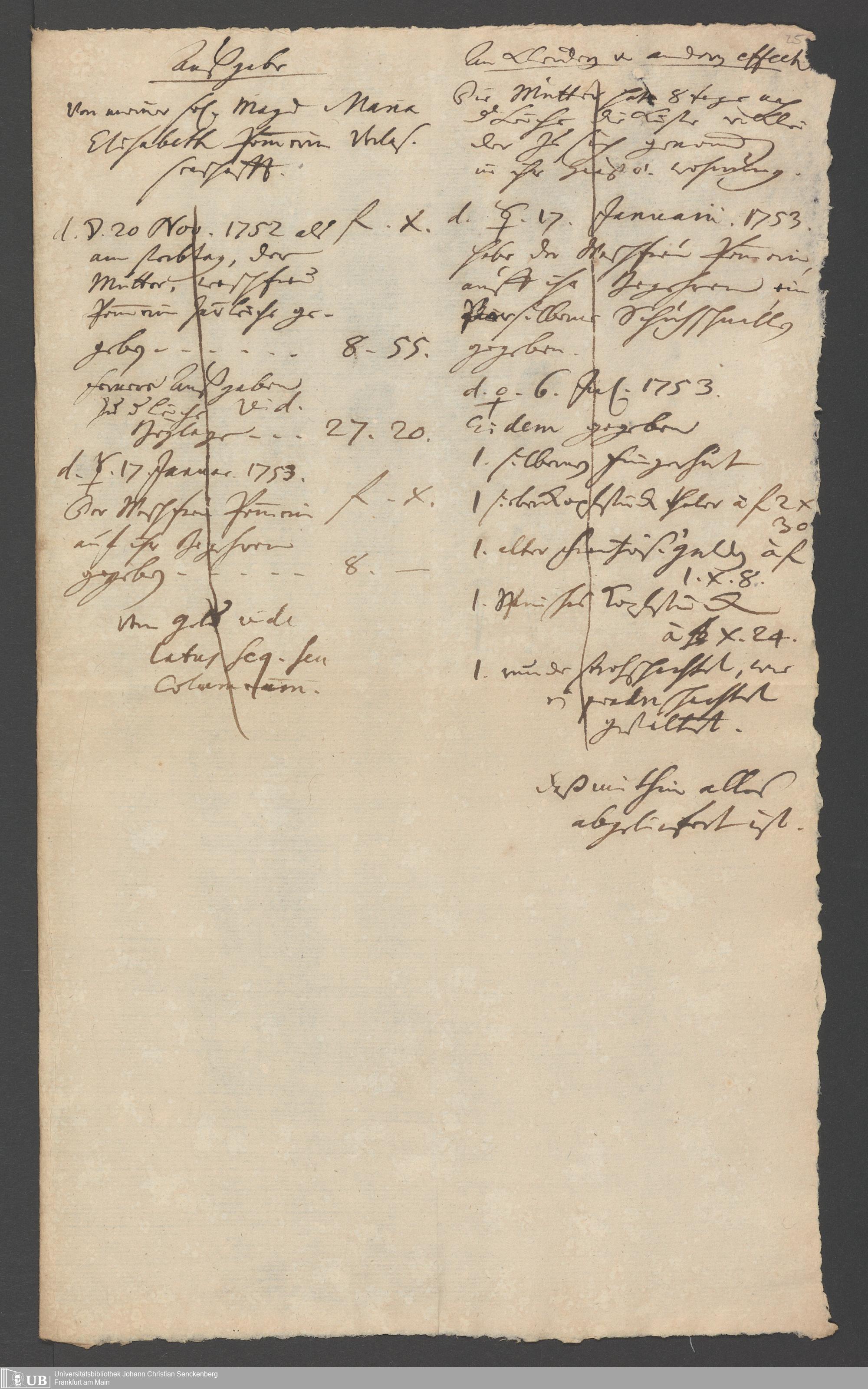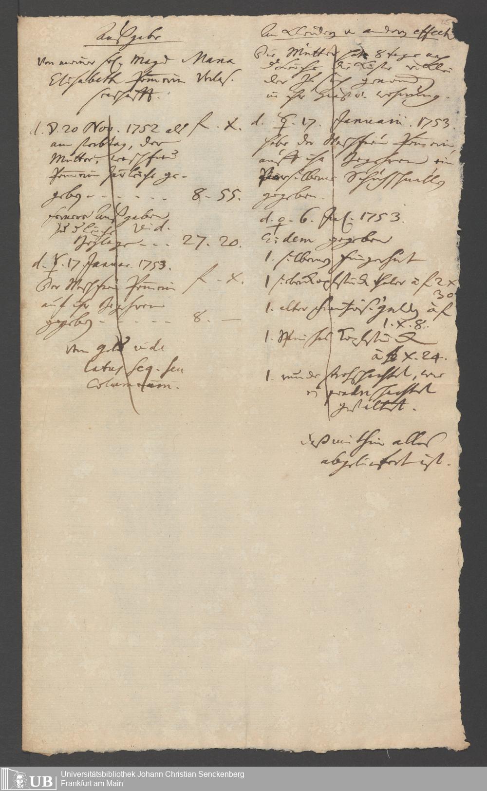 Na 31 Nachlass Johann Christian Senckenberg, 318 - Rechnungen und Schriftstücke über die Mägde