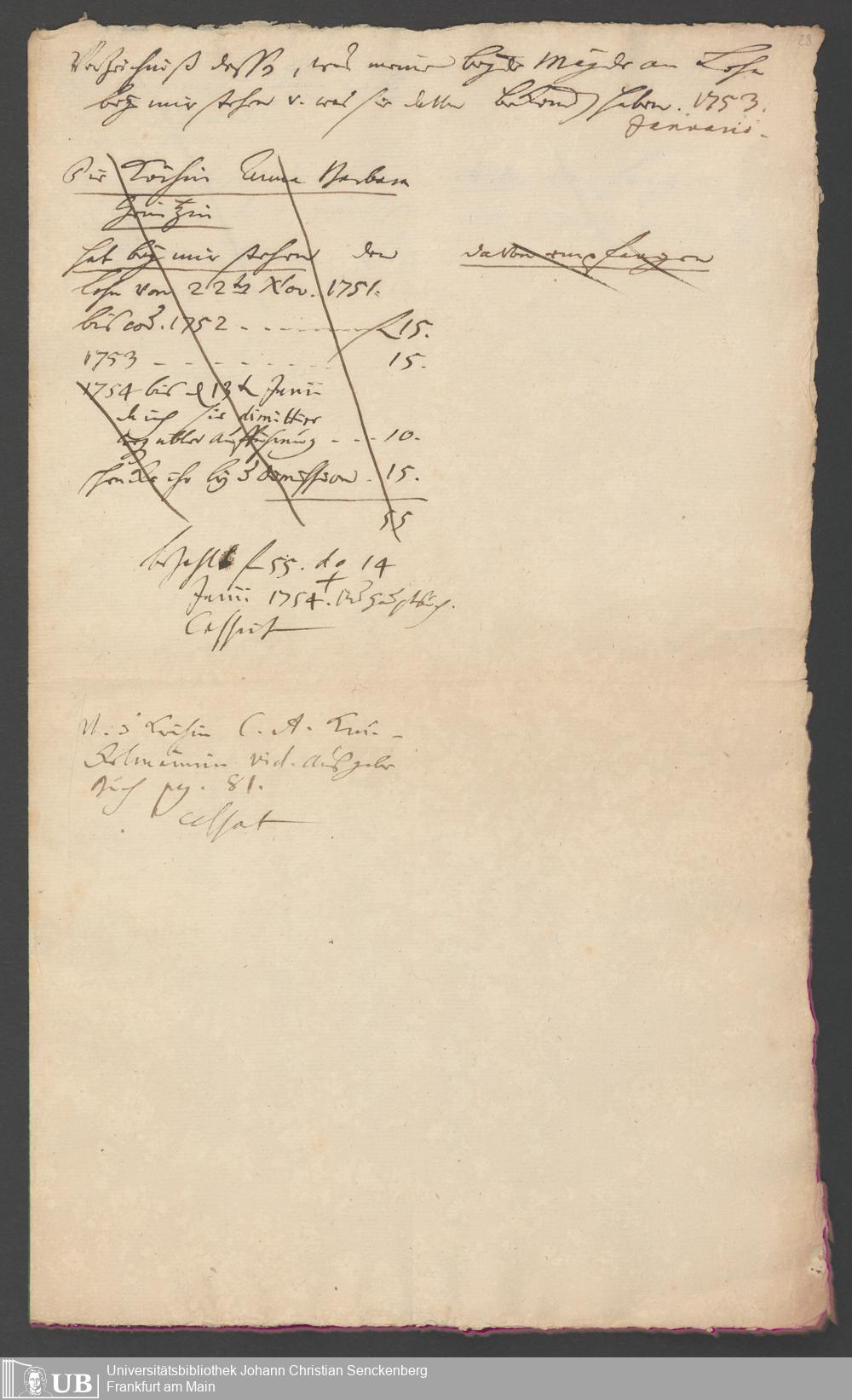 Na 31 Nachlass Johann Christian Senckenberg, 318 - Rechnungen und Schriftstücke über die Mägde