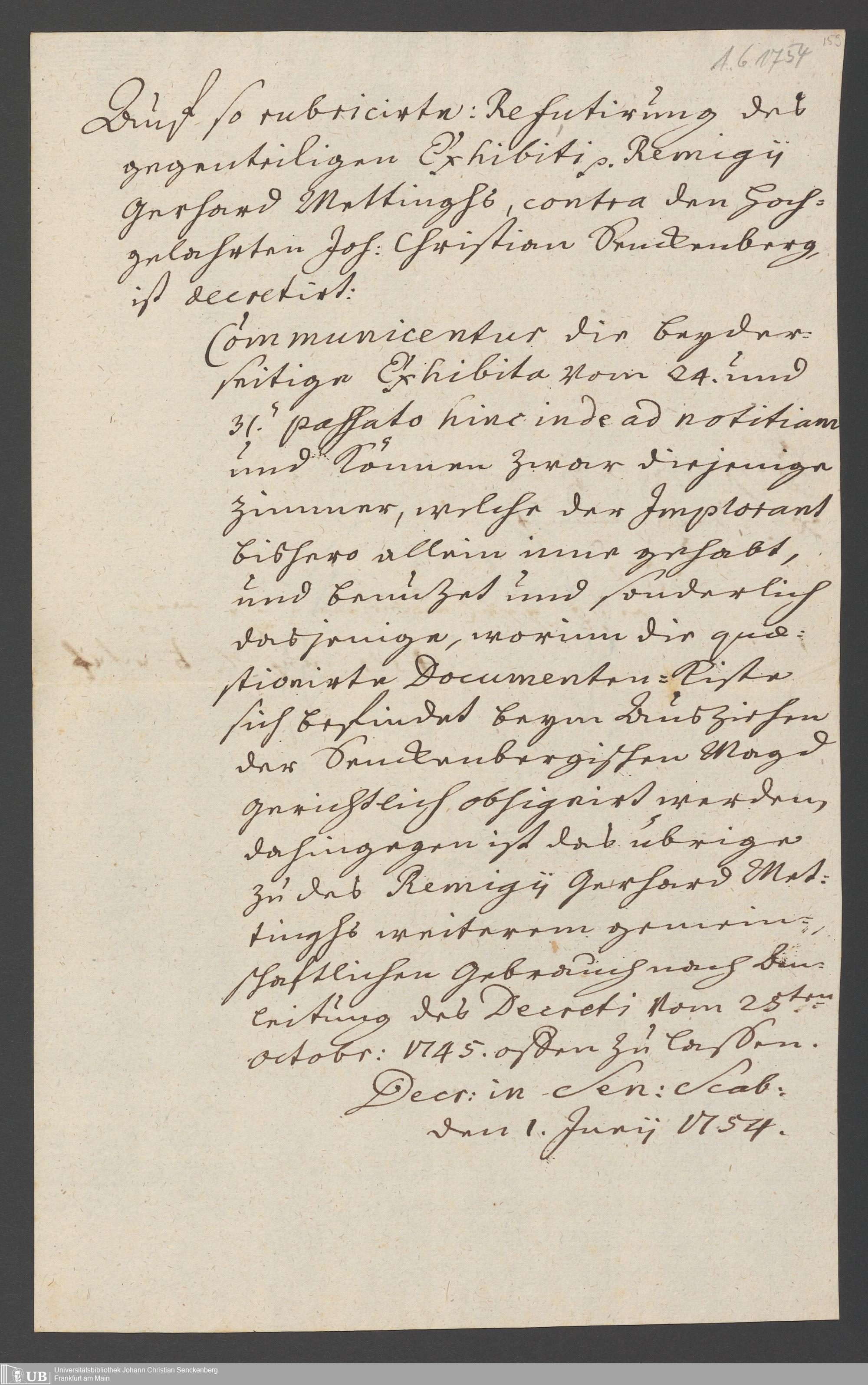 Na 31 Nachlass Johann Christian Senckenberg, 324 - Erbauseinandersetzung Mettingh II Acta Audientiae Consularis