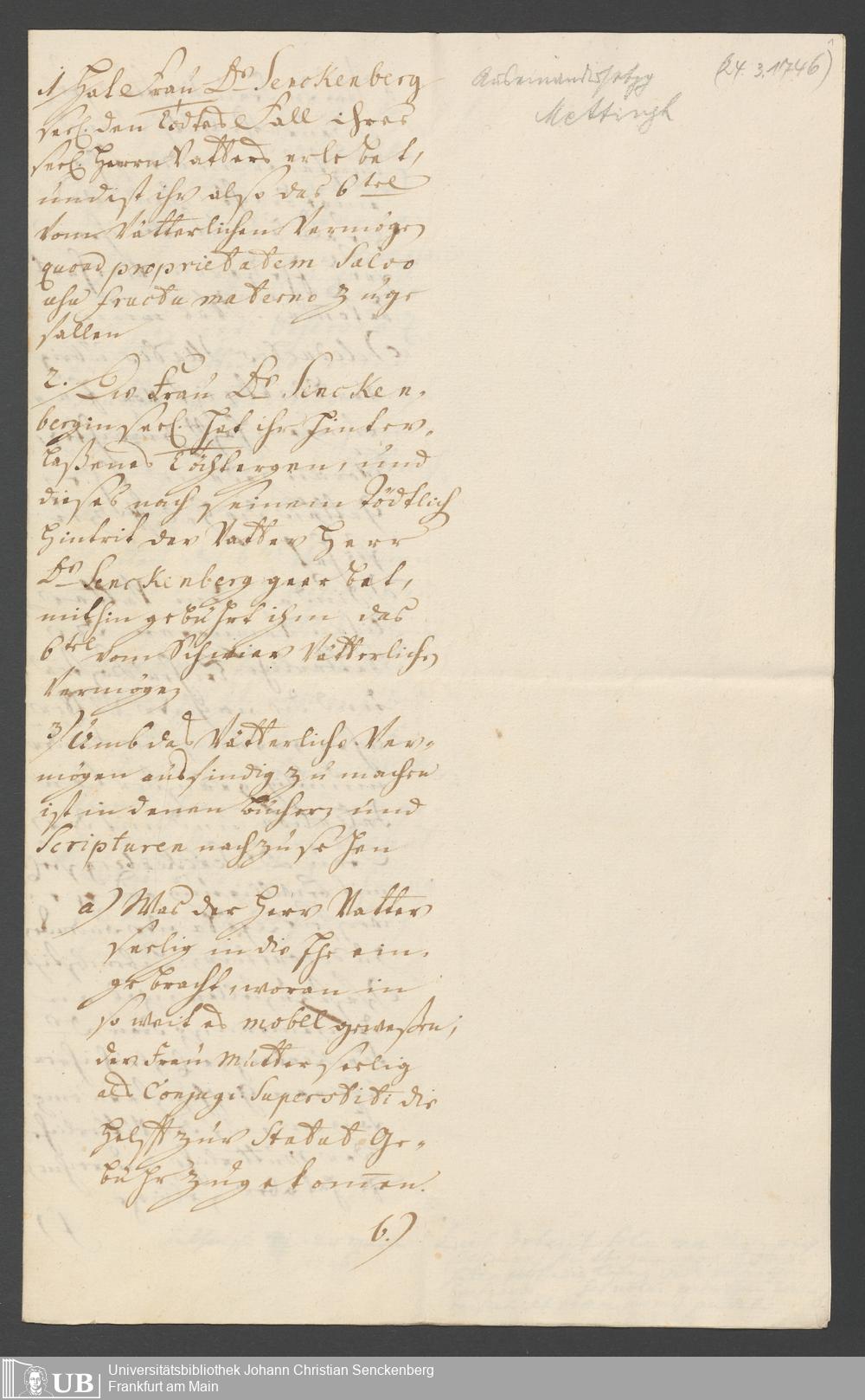 Na 31 Nachlass Johann Christian Senckenberg, 325 - Erbauseinandersetzung Mettingh III