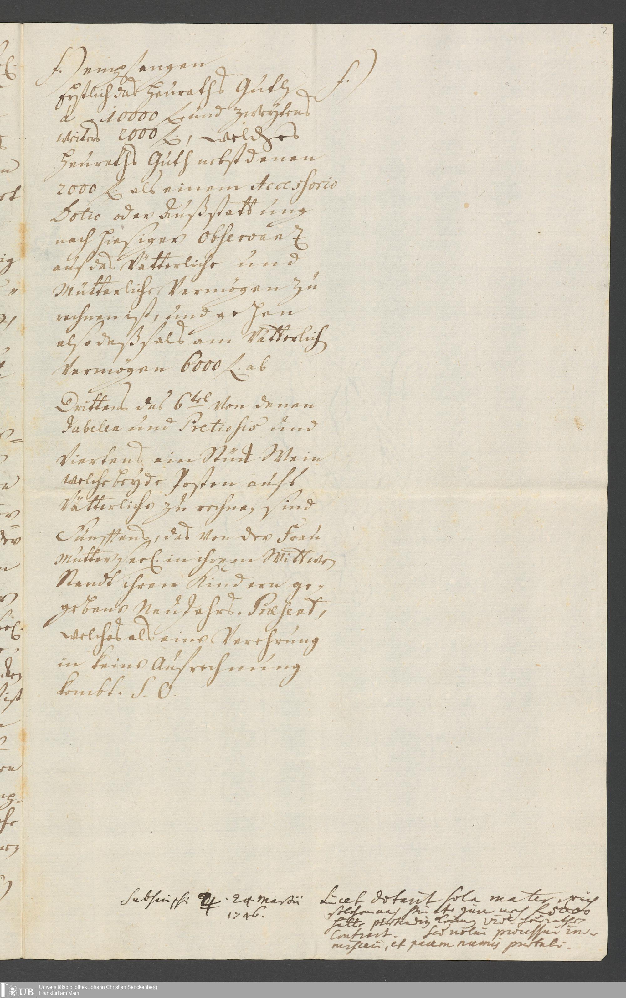 Na 31 Nachlass Johann Christian Senckenberg, 325 - Erbauseinandersetzung Mettingh III