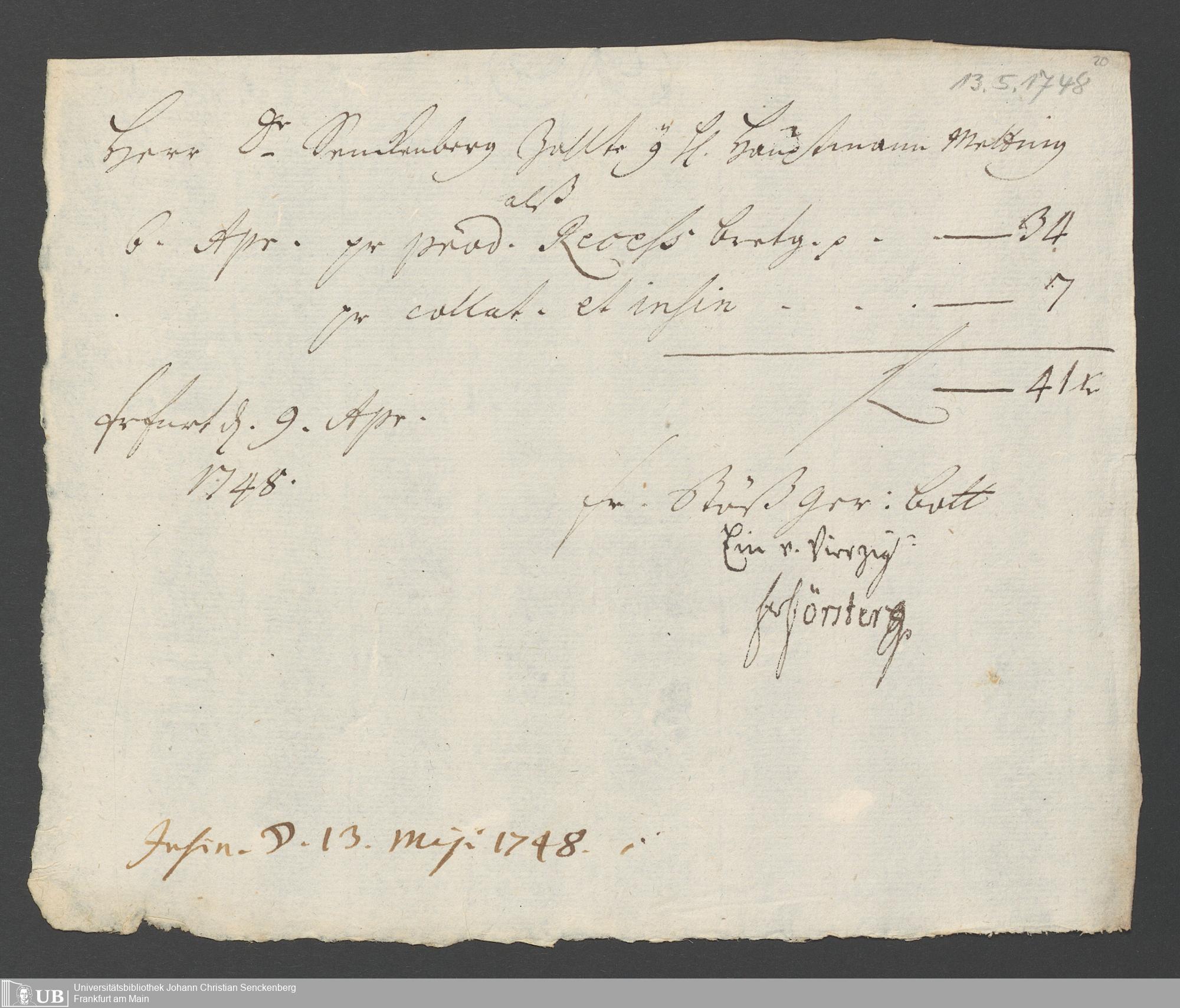Na 31 Nachlass Johann Christian Senckenberg, 325 - Erbauseinandersetzung Mettingh III