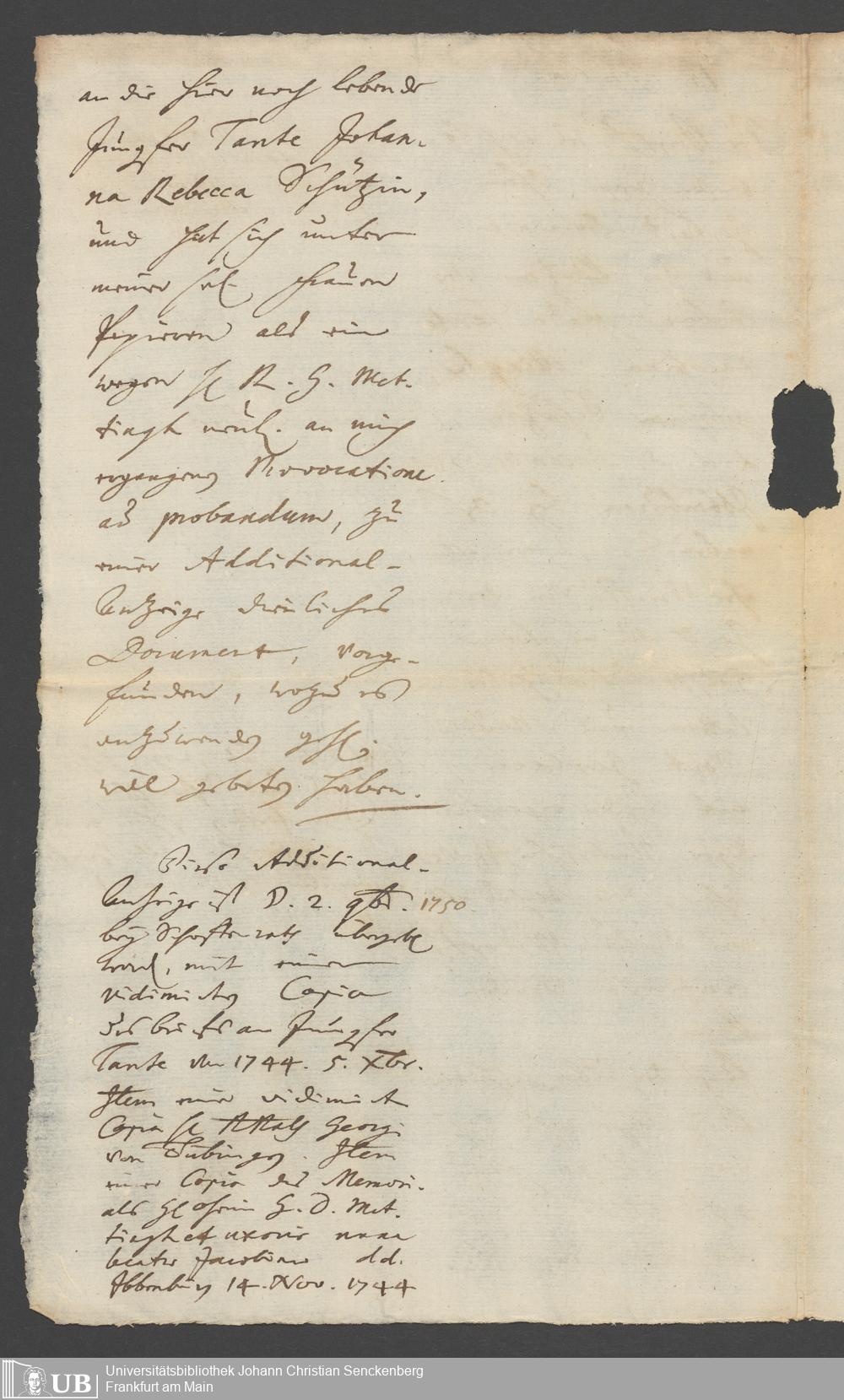 Na 31 Nachlass Johann Christian Senckenberg, 325 - Erbauseinandersetzung Mettingh III