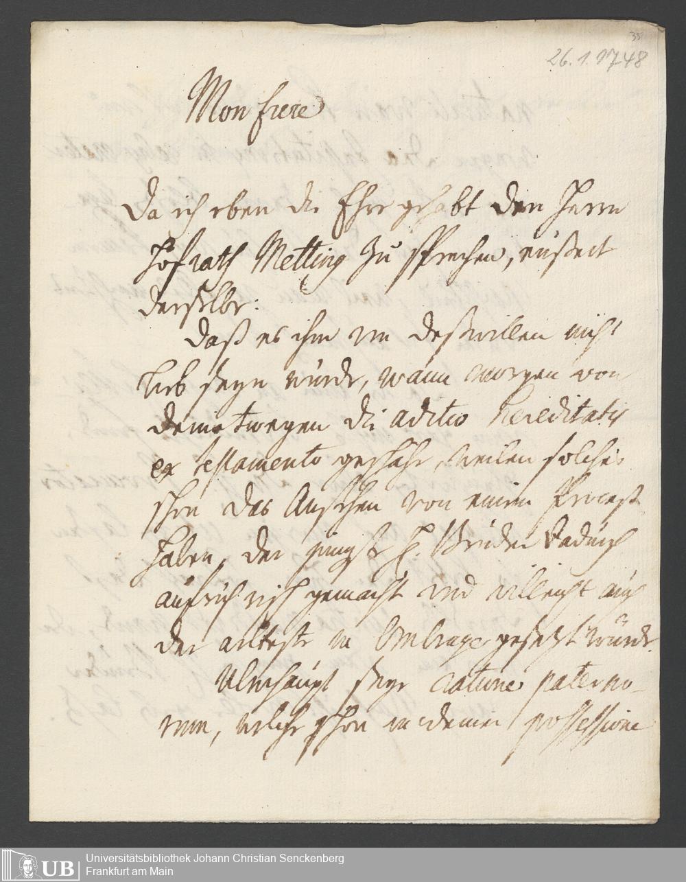 Na 31 Nachlass Johann Christian Senckenberg, 325 - Erbauseinandersetzung Mettingh III