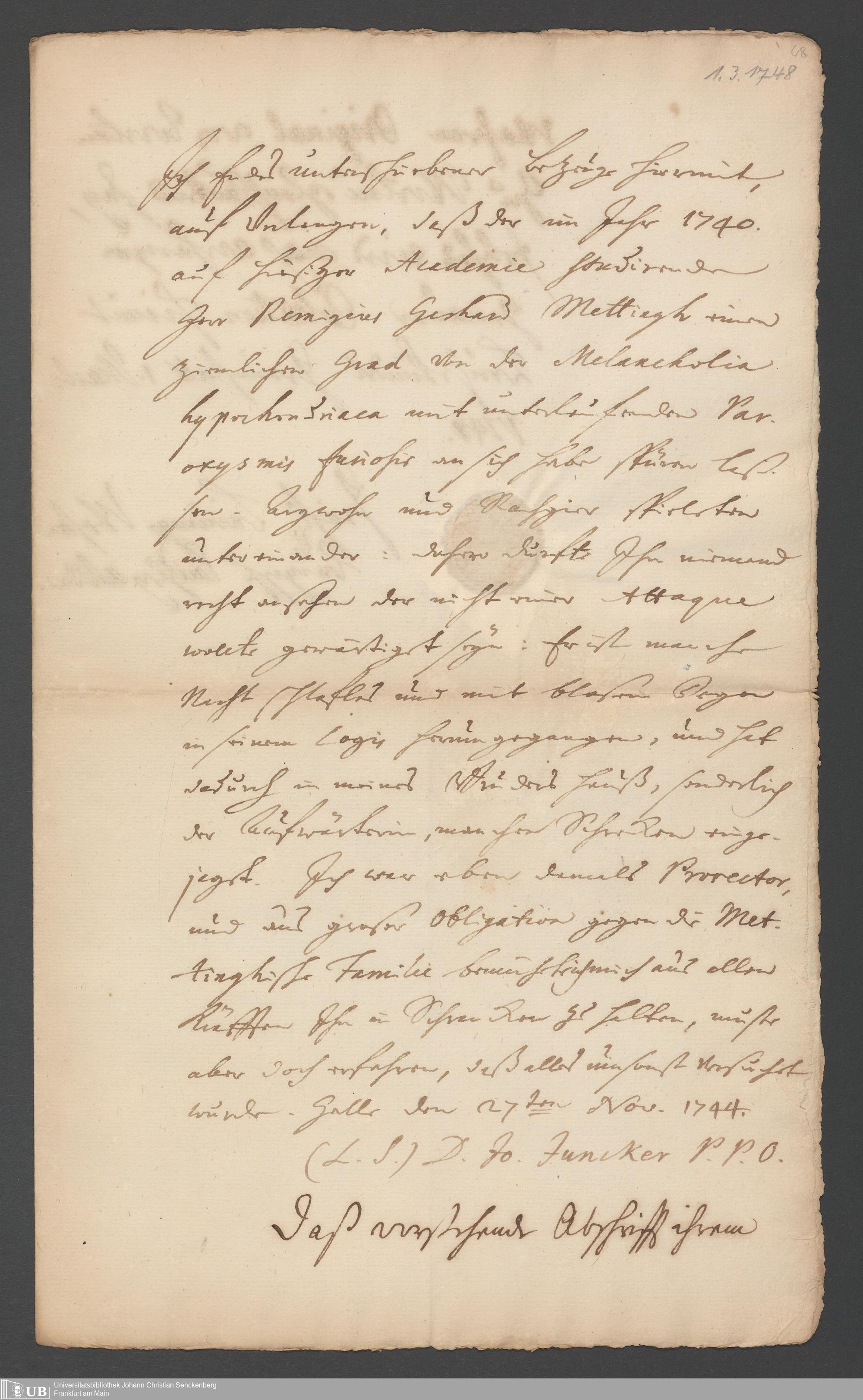 Na 31 Nachlass Johann Christian Senckenberg, 325 - Erbauseinandersetzung Mettingh III