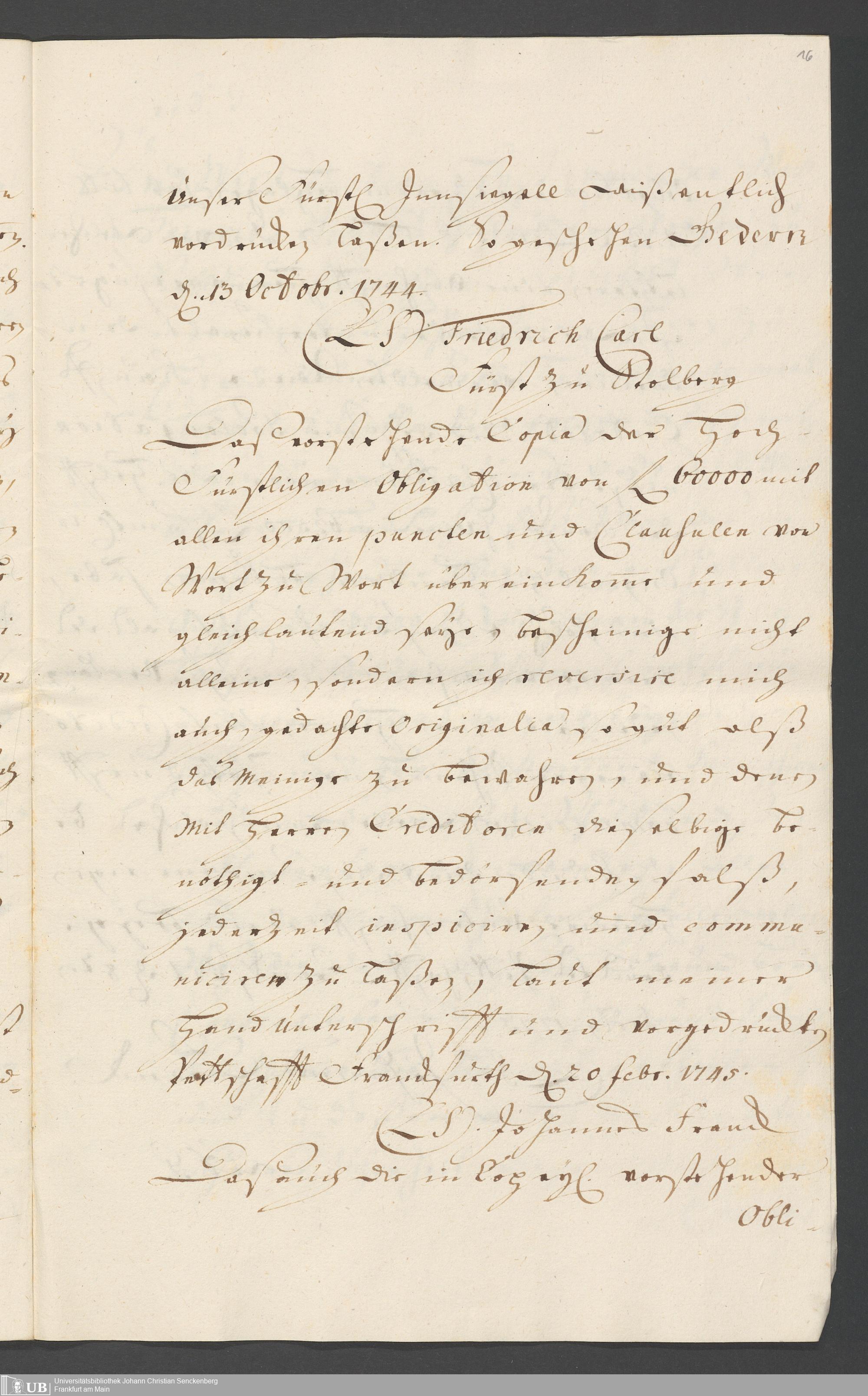 Na 31 Nachlass Johann Christian Senckenberg, 329 - Erbacher Obligation