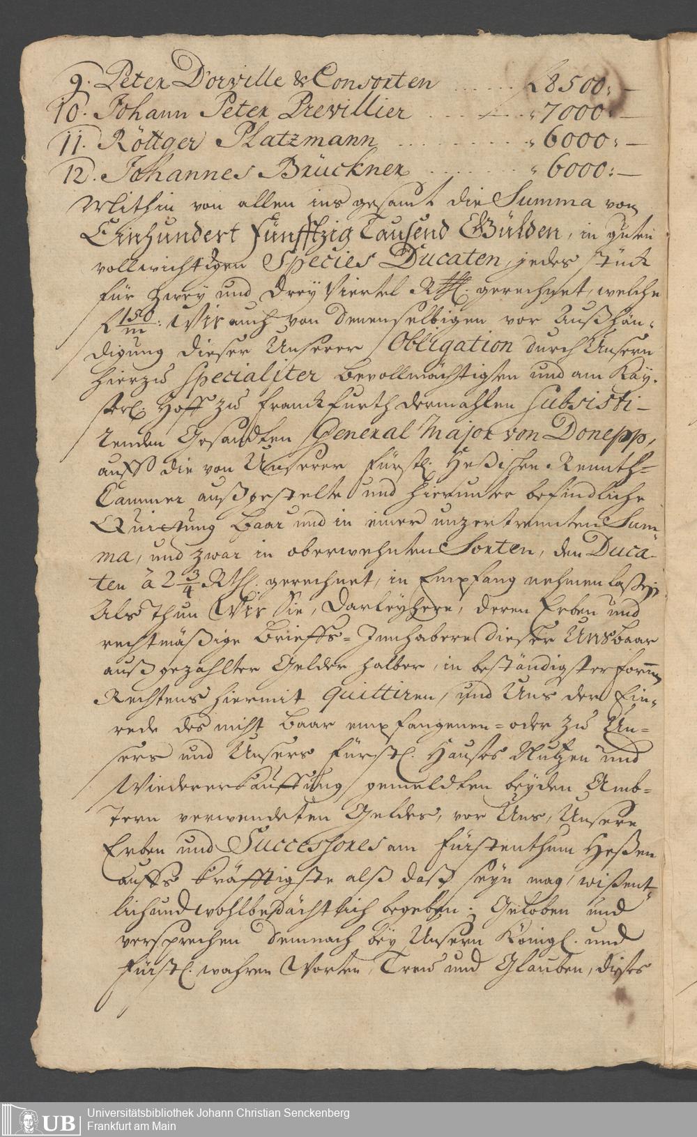 Na 31 Nachlass Johann Christian Senckenberg, 330 - Schuldbrief des Landgrafen Friedrich von Hessen