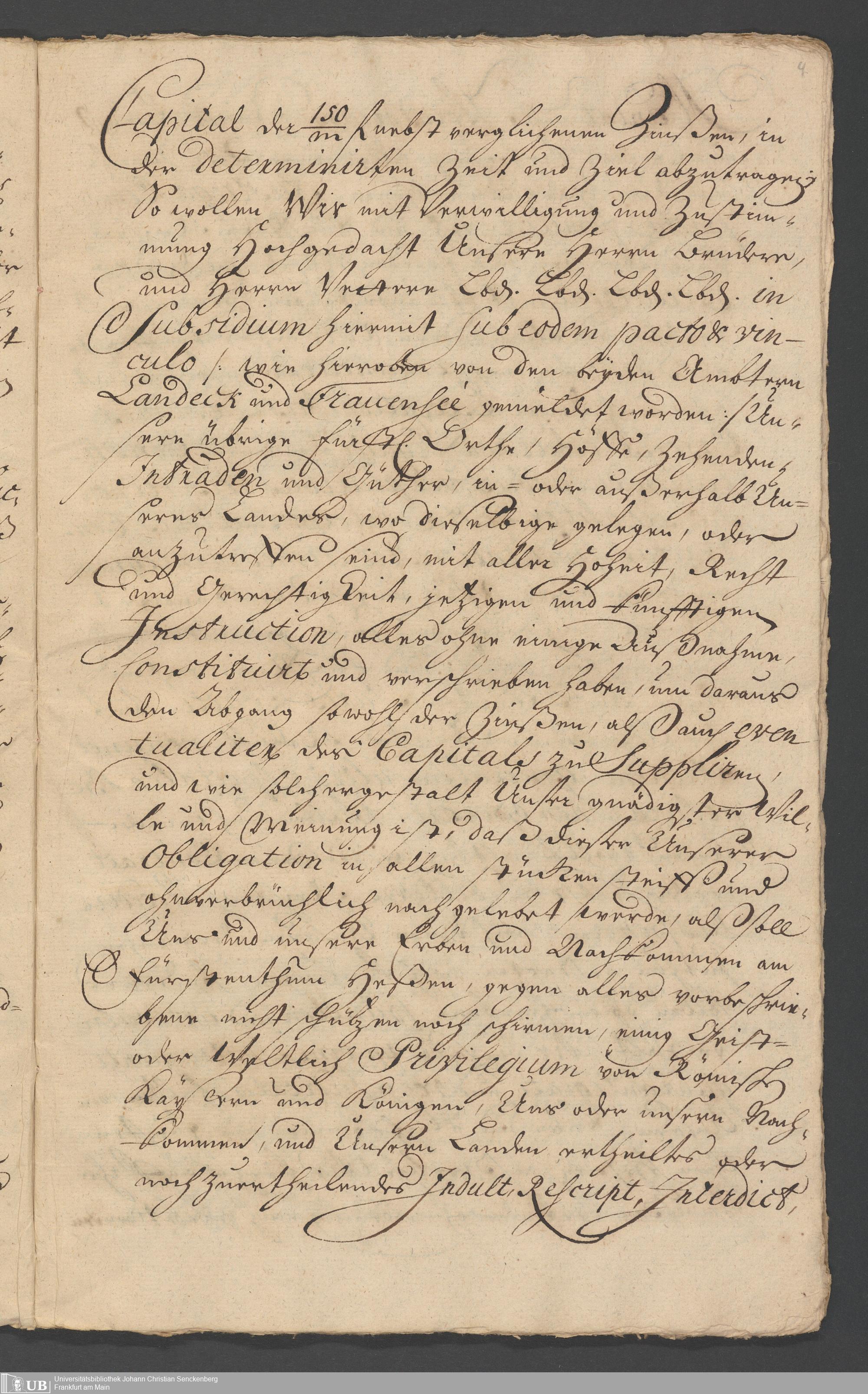 Na 31 Nachlass Johann Christian Senckenberg, 330 - Schuldbrief des Landgrafen Friedrich von Hessen