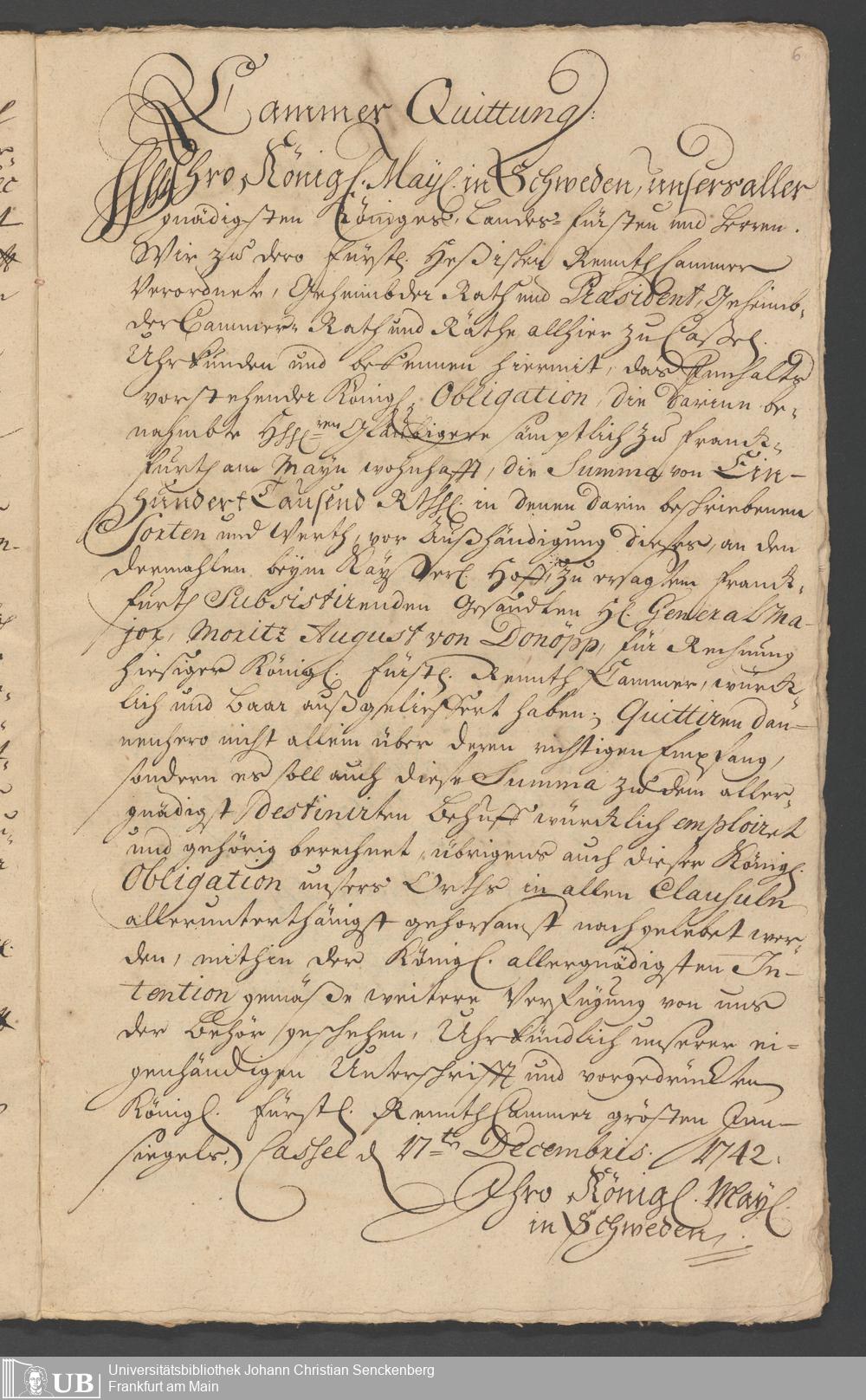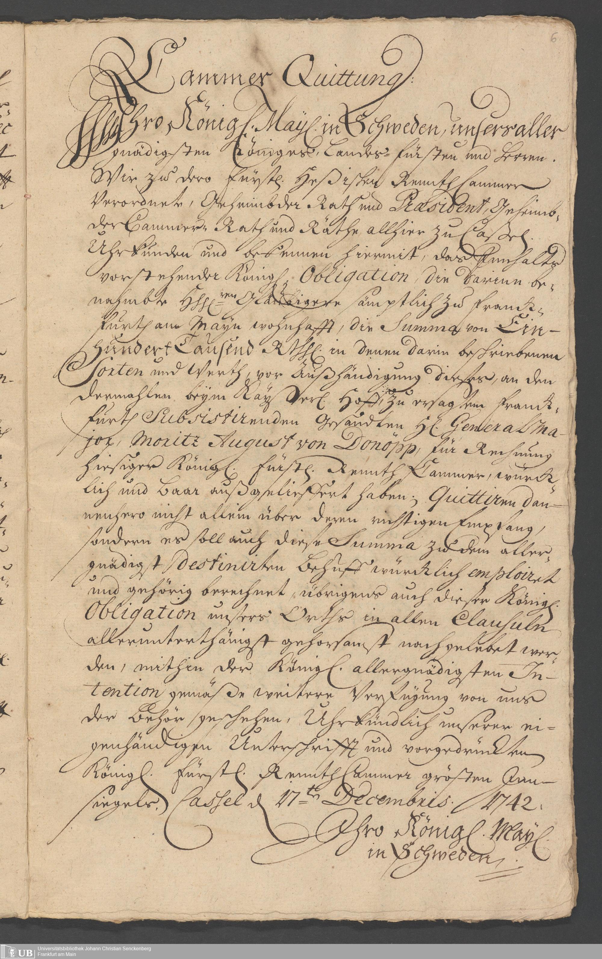 Na 31 Nachlass Johann Christian Senckenberg, 330 - Schuldbrief des Landgrafen Friedrich von Hessen