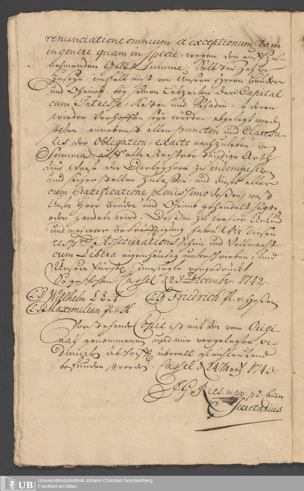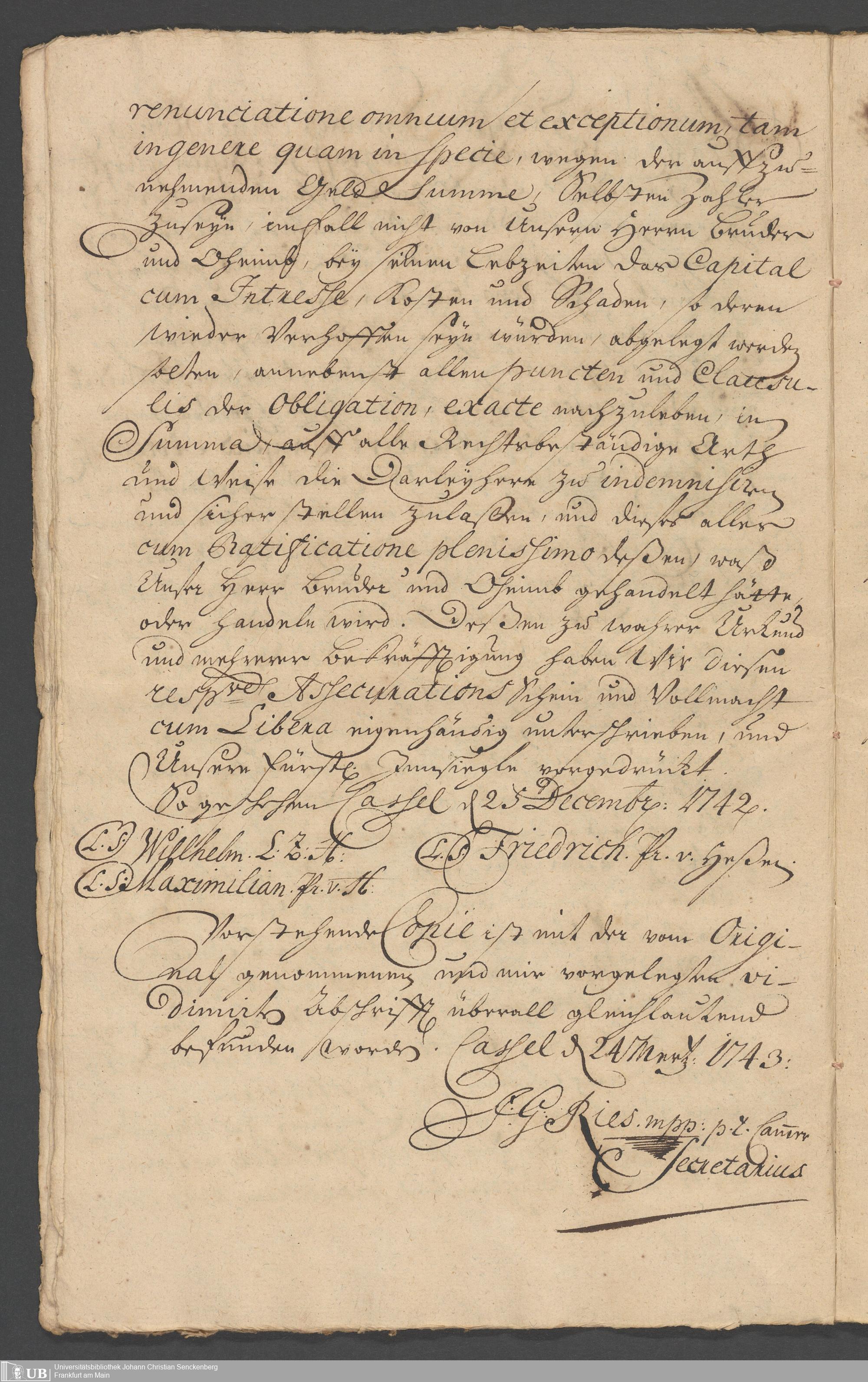 Na 31 Nachlass Johann Christian Senckenberg, 330 - Schuldbrief des Landgrafen Friedrich von Hessen