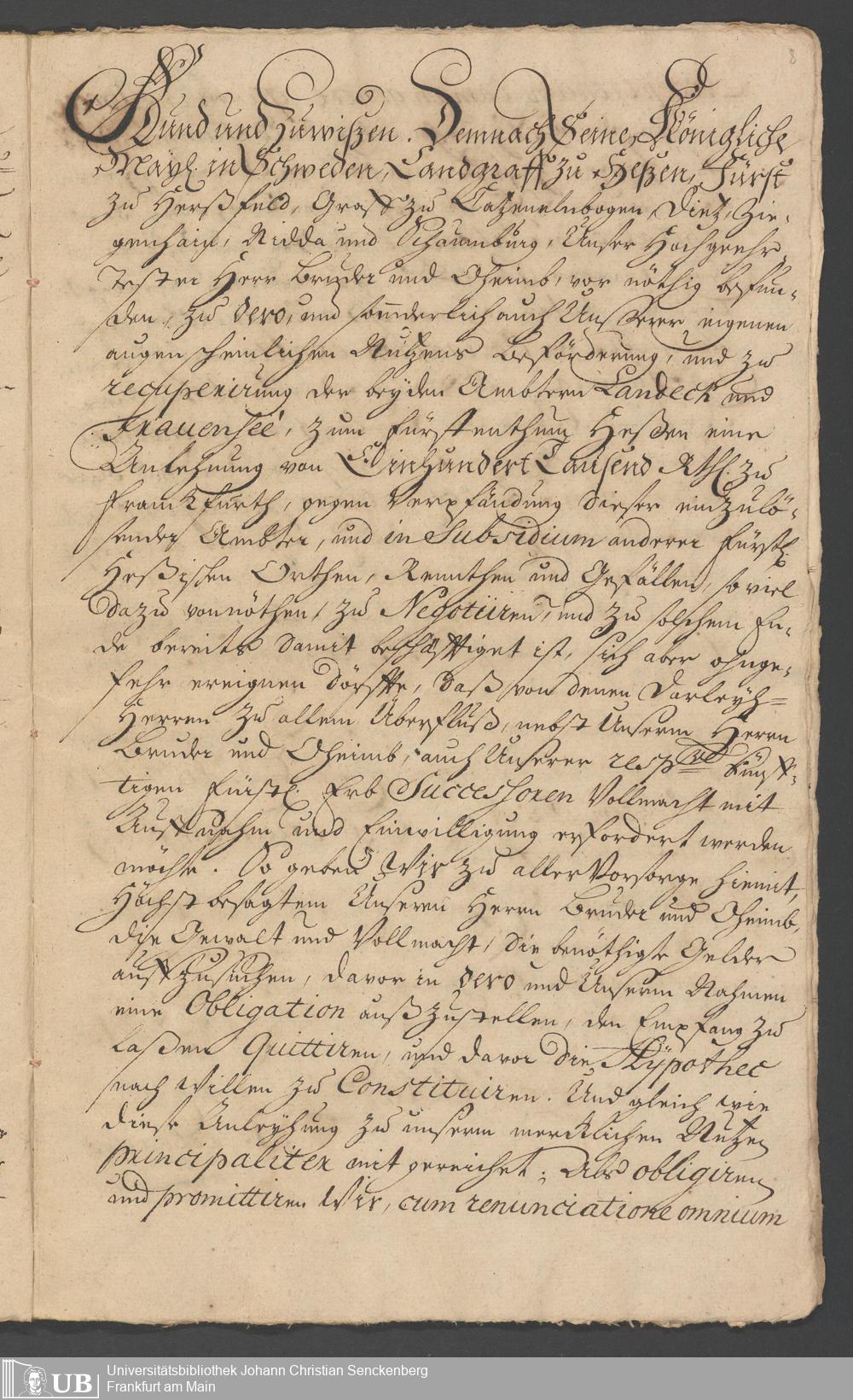 Na 31 Nachlass Johann Christian Senckenberg, 330 - Schuldbrief des Landgrafen Friedrich von Hessen