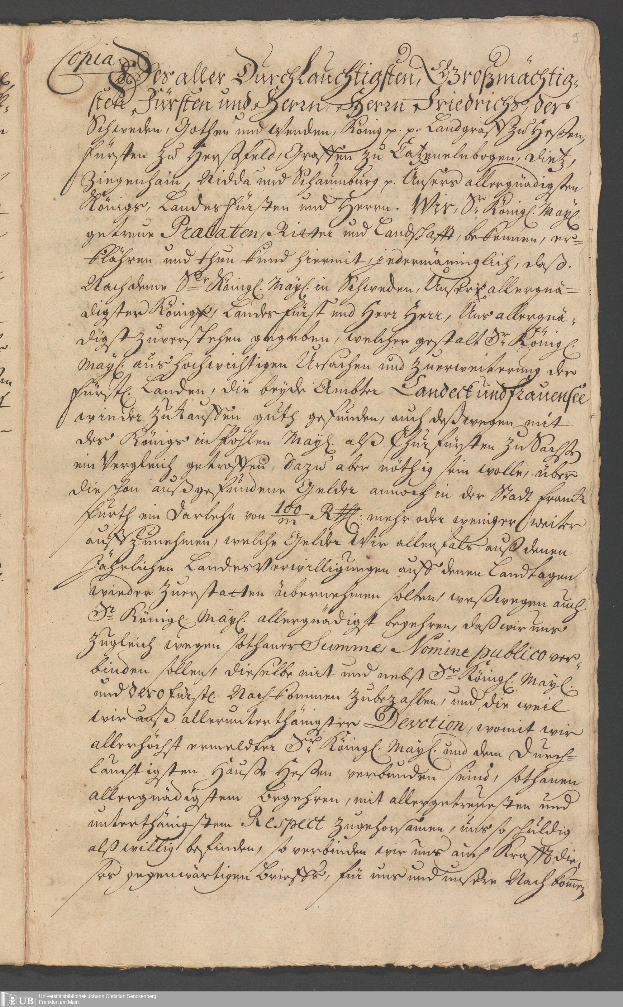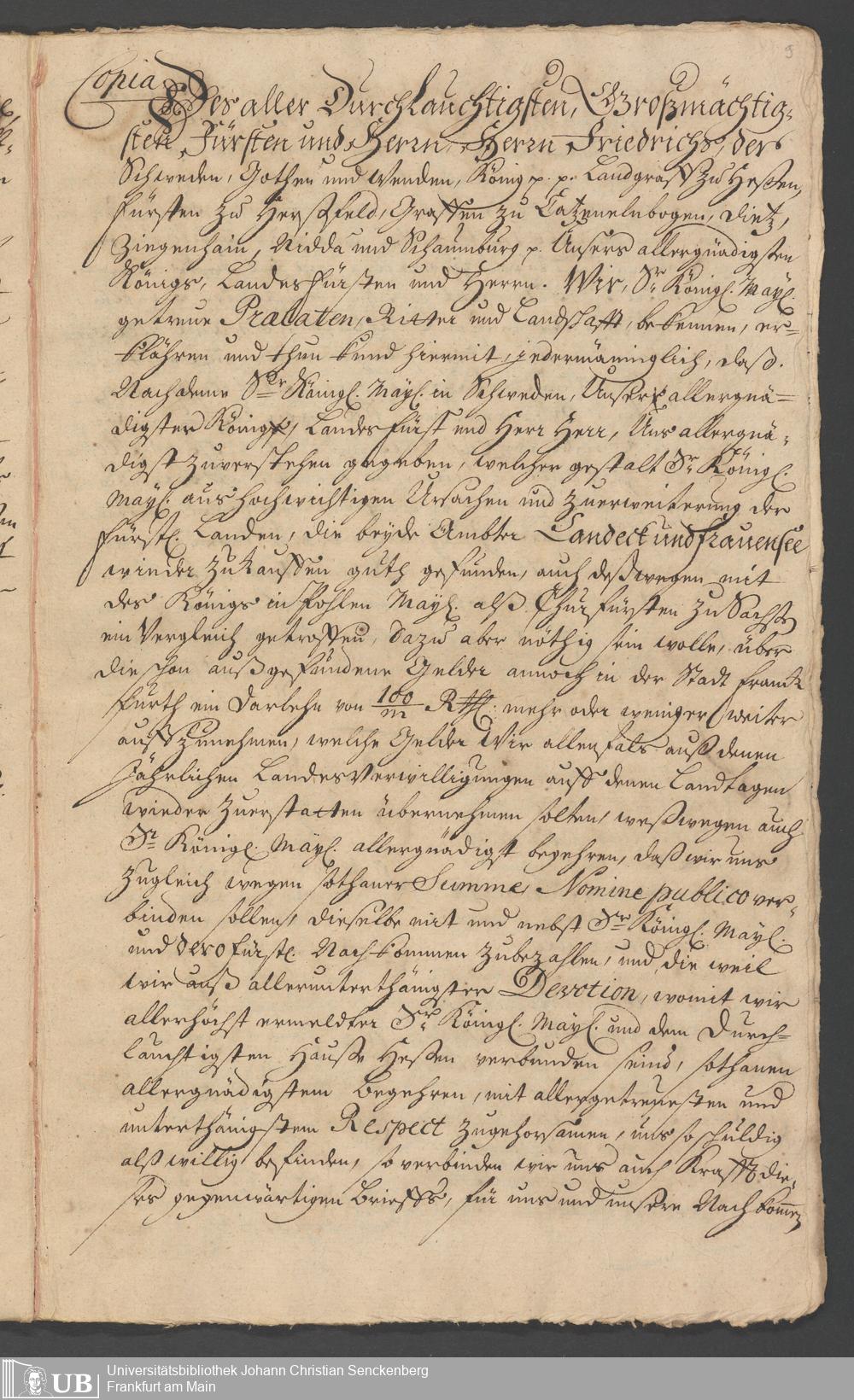 Na 31 Nachlass Johann Christian Senckenberg, 330 - Schuldbrief des Landgrafen Friedrich von Hessen