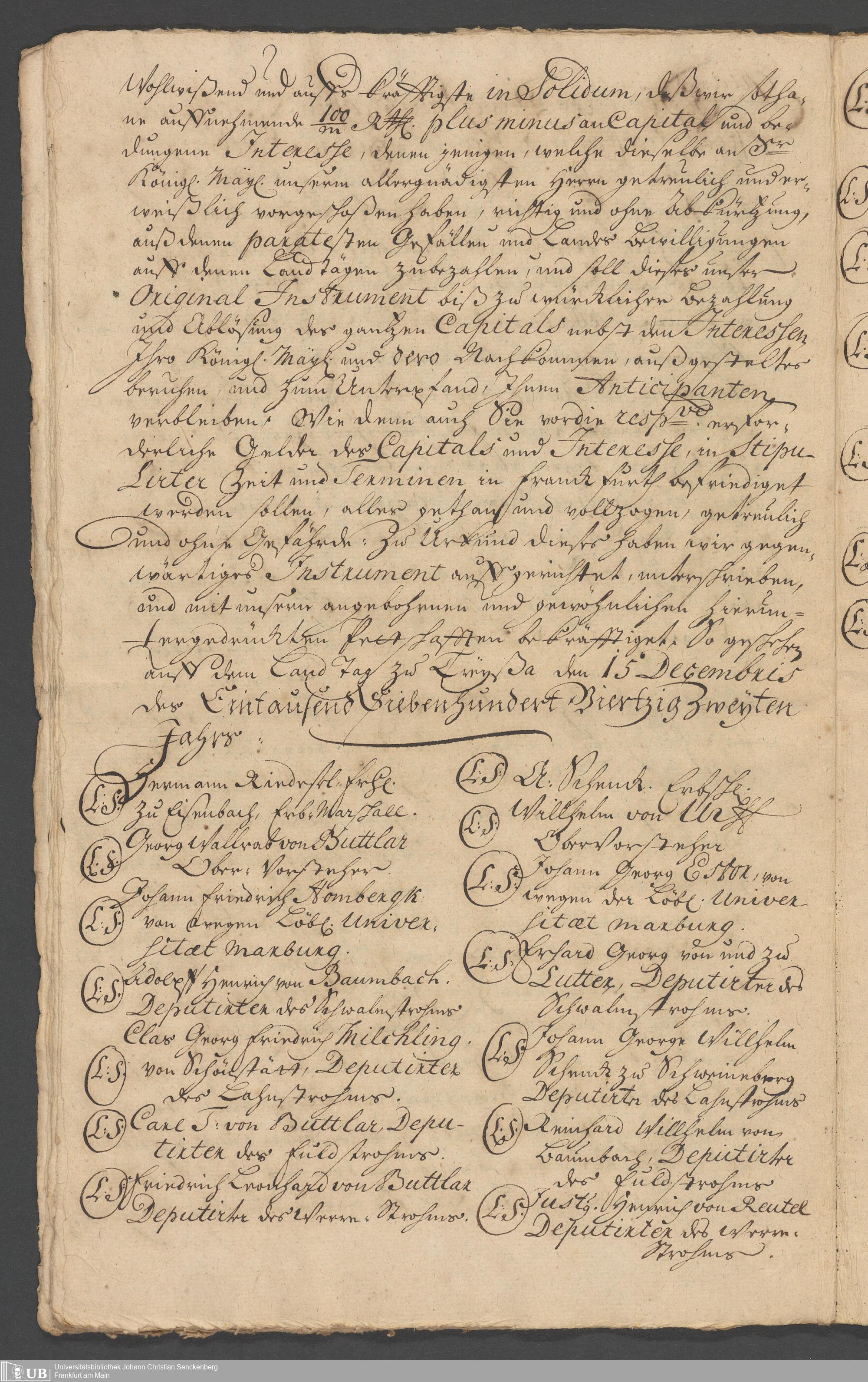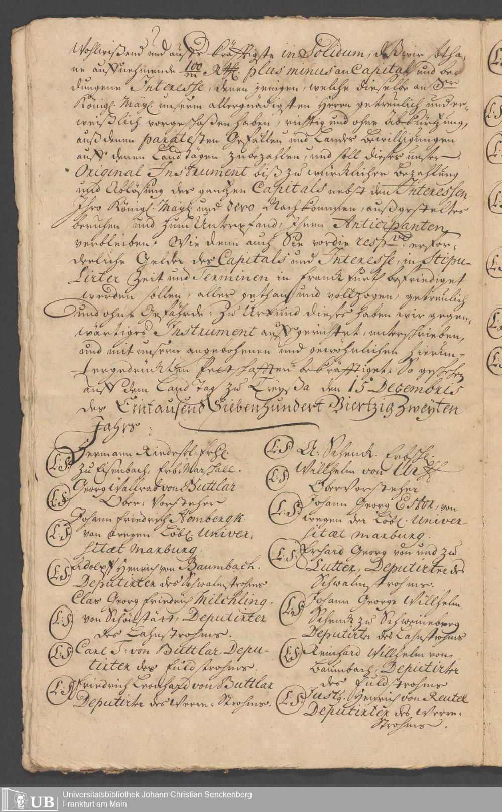 Na 31 Nachlass Johann Christian Senckenberg, 330 - Schuldbrief des Landgrafen Friedrich von Hessen