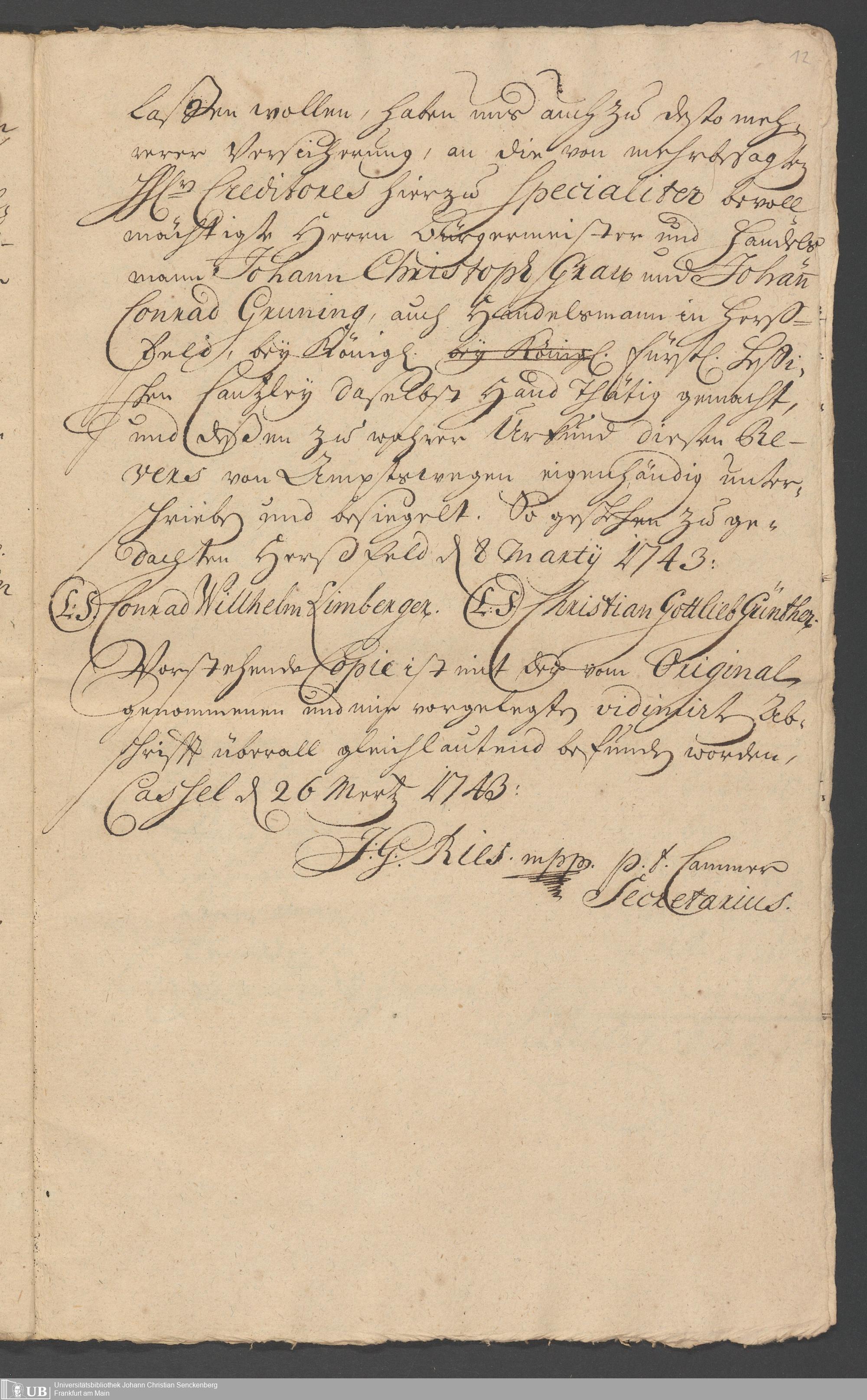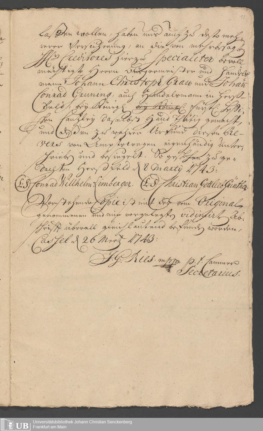 Na 31 Nachlass Johann Christian Senckenberg, 330 - Schuldbrief des Landgrafen Friedrich von Hessen