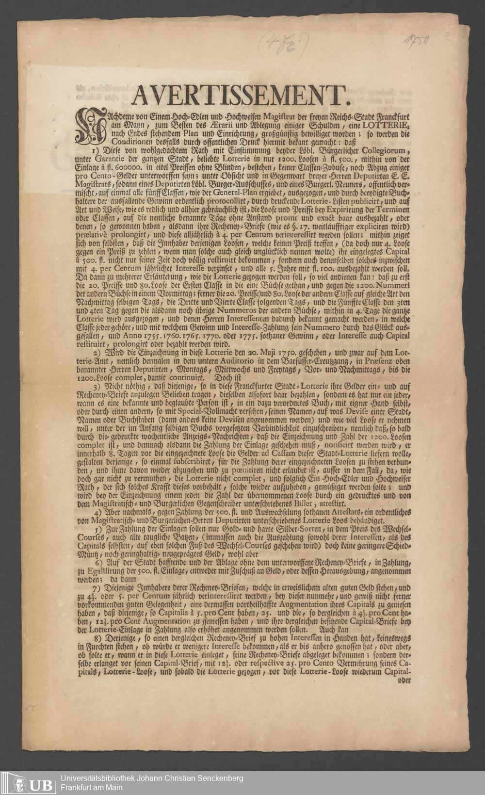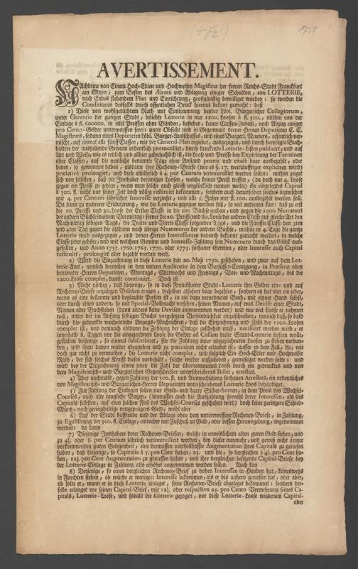 Na 31 Nachlass Johann Christian Senckenberg, 331 - Frankfurter Kapital-Lotterie