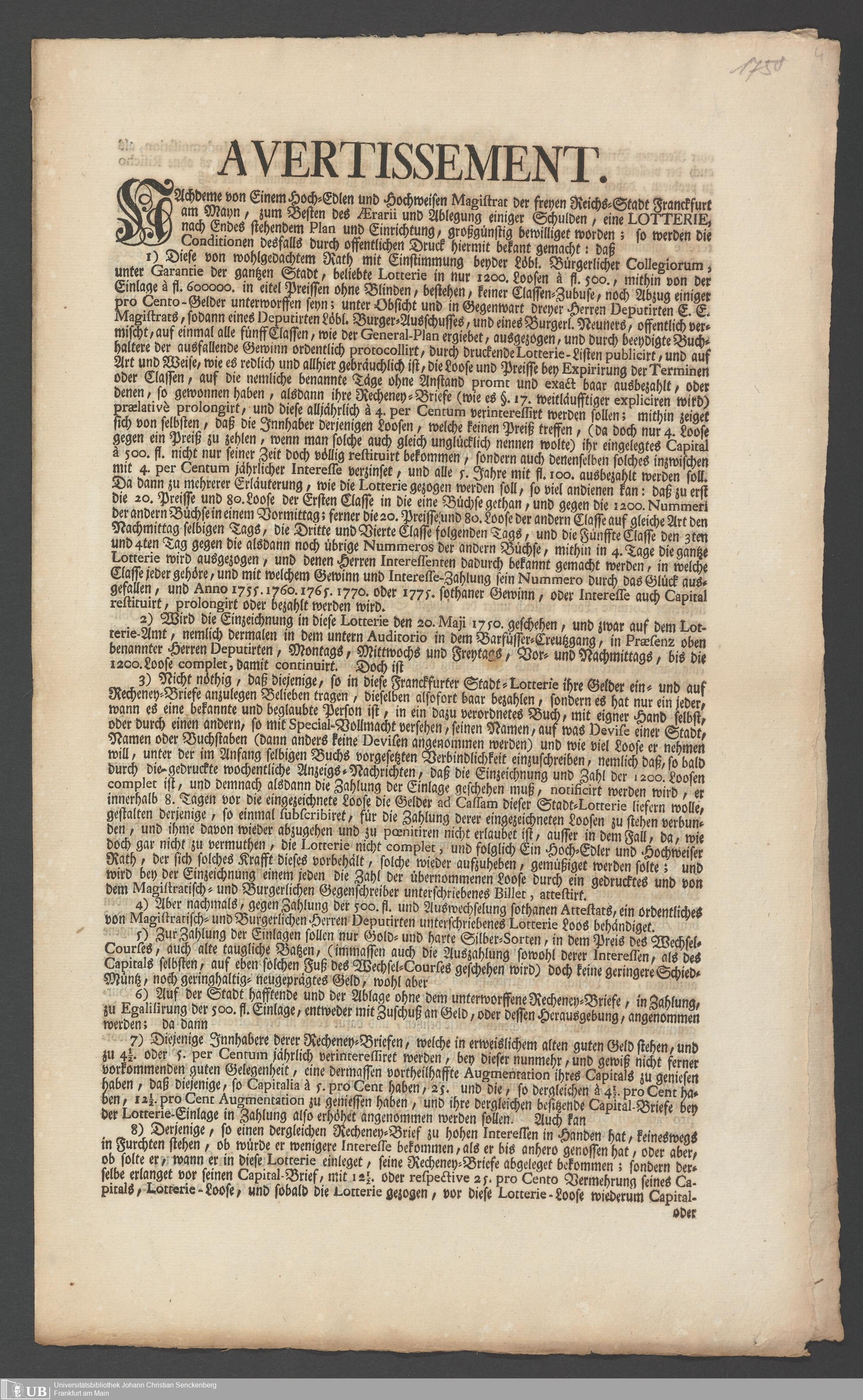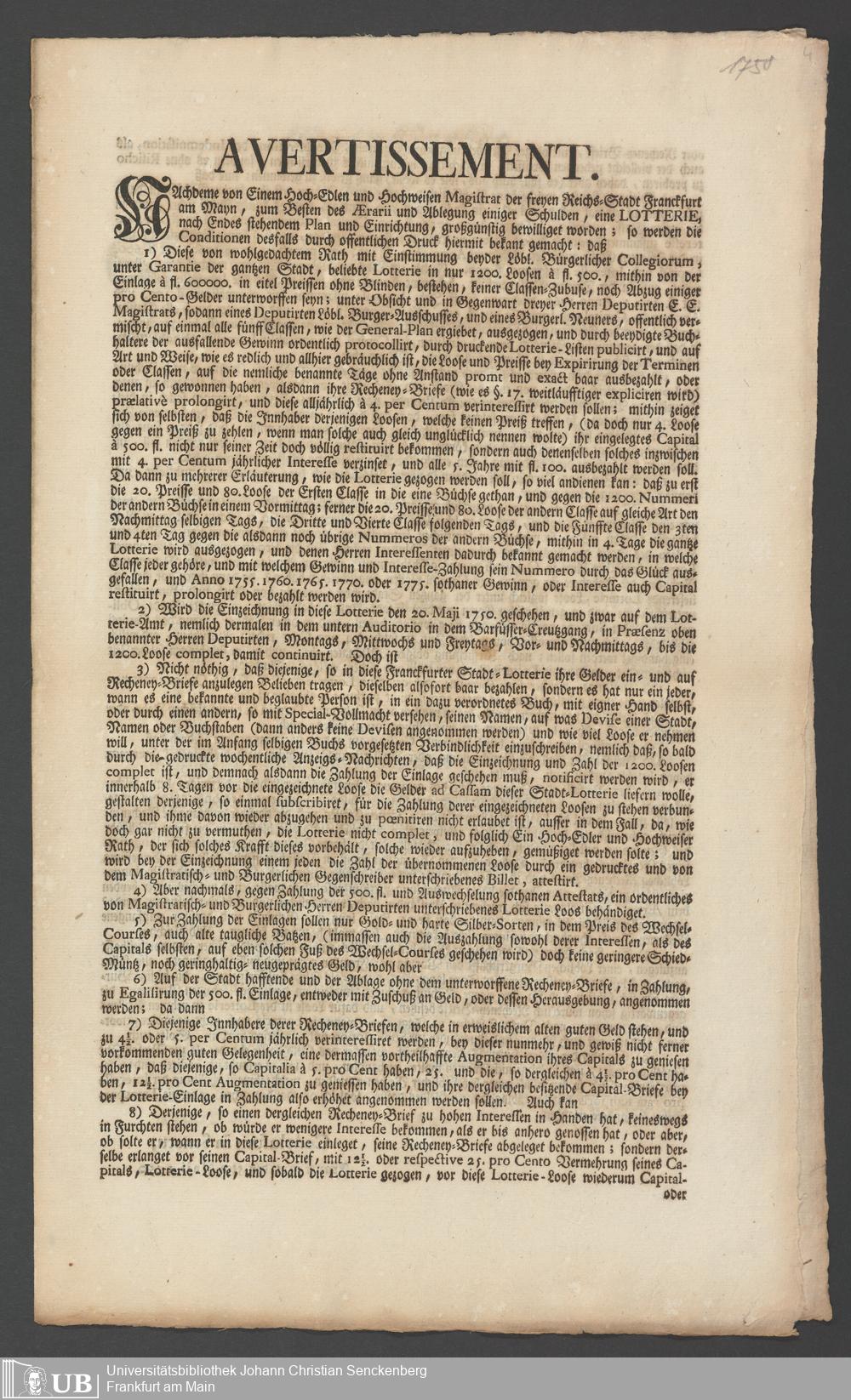 Na 31 Nachlass Johann Christian Senckenberg, 331 - Frankfurter Kapital-Lotterie