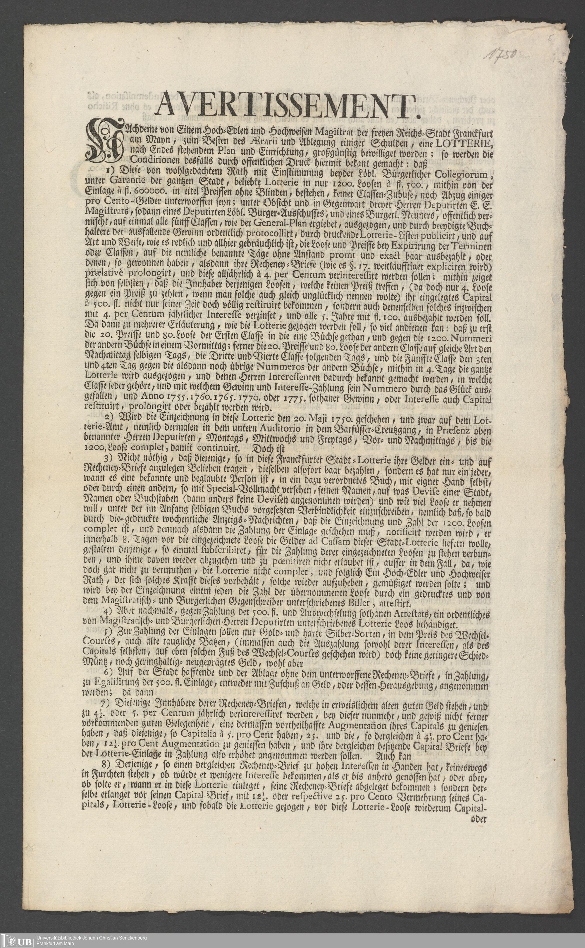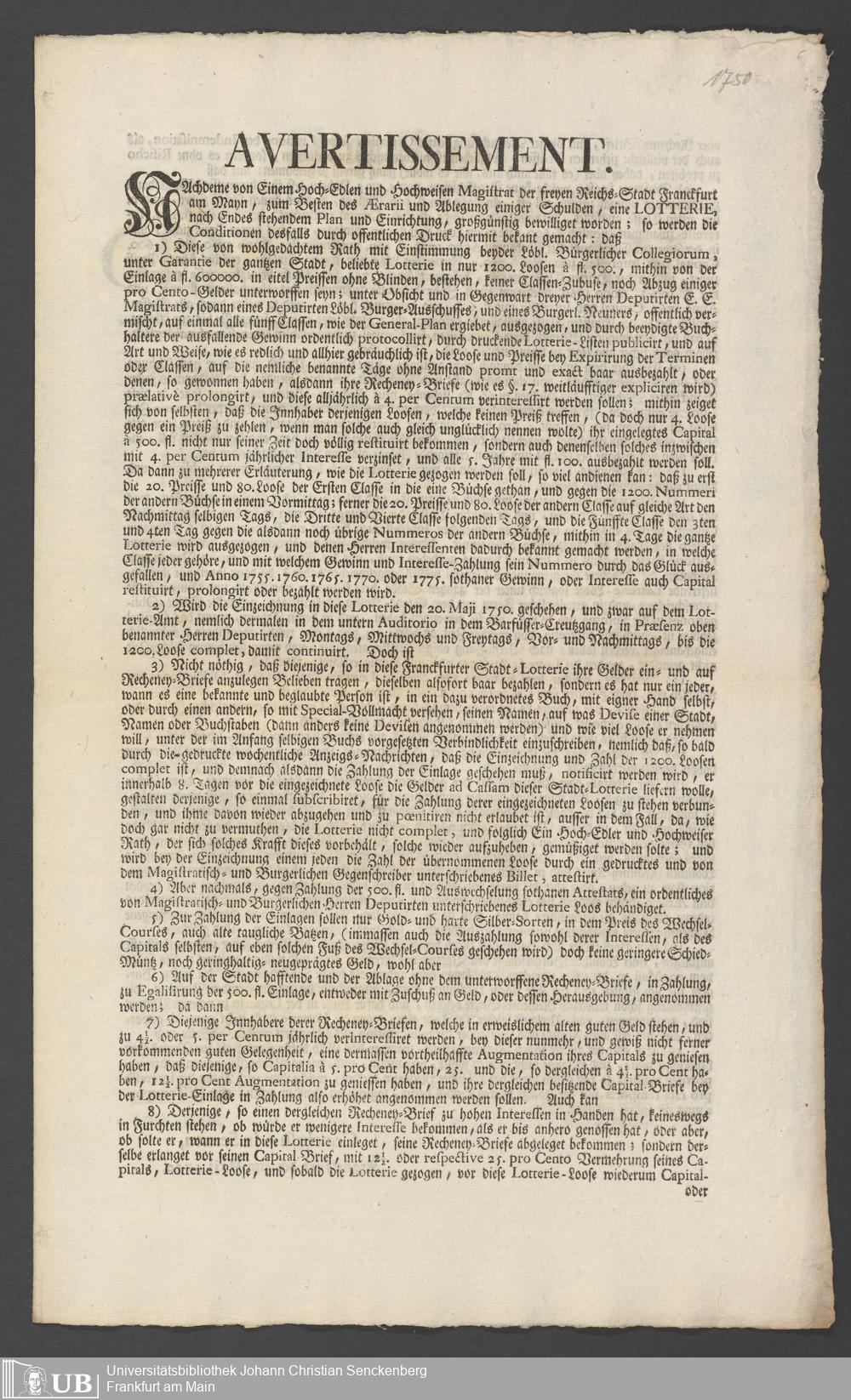 Na 31 Nachlass Johann Christian Senckenberg, 331 - Frankfurter Kapital-Lotterie