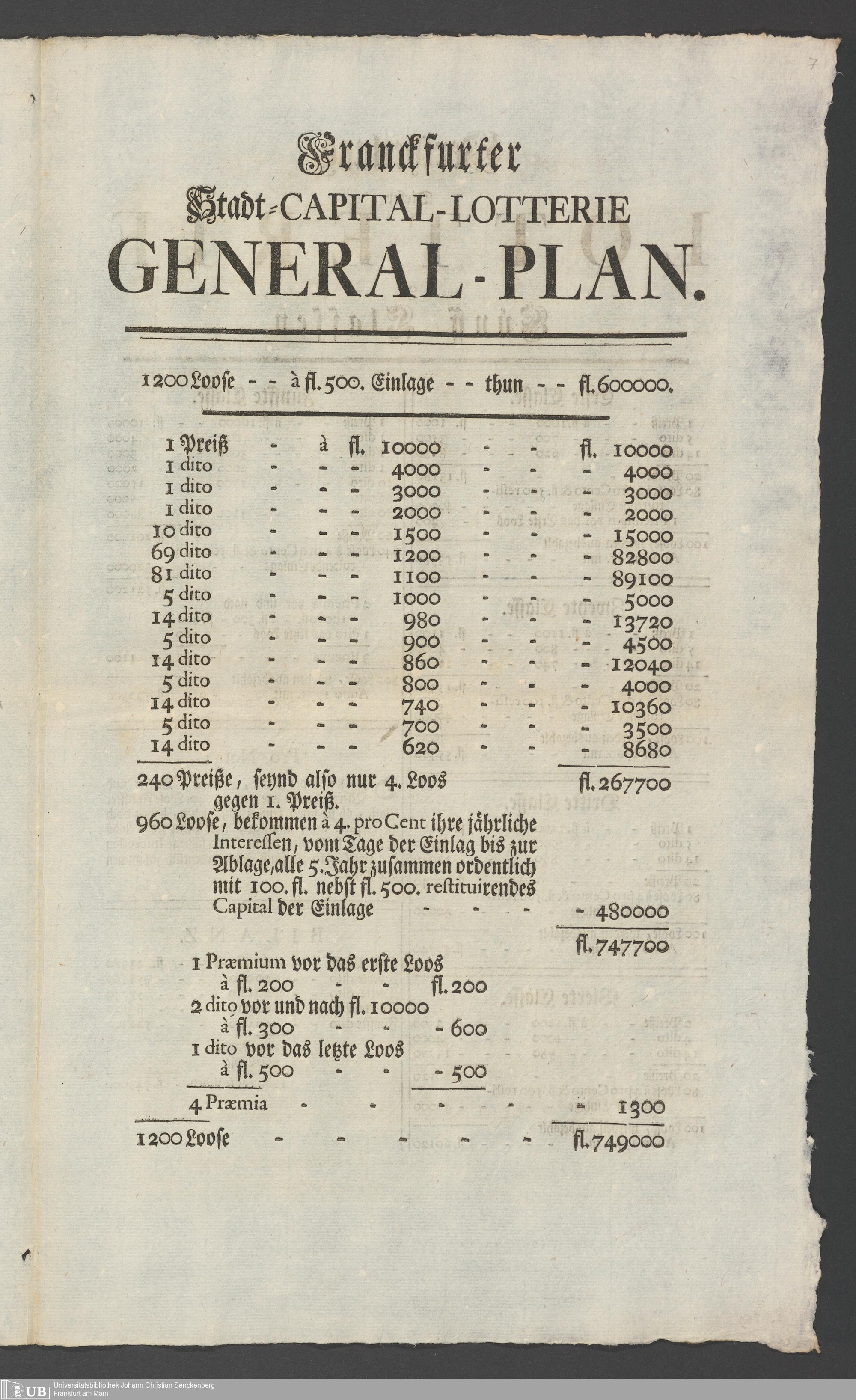 Na 31 Nachlass Johann Christian Senckenberg, 331 - Frankfurter Kapital-Lotterie
