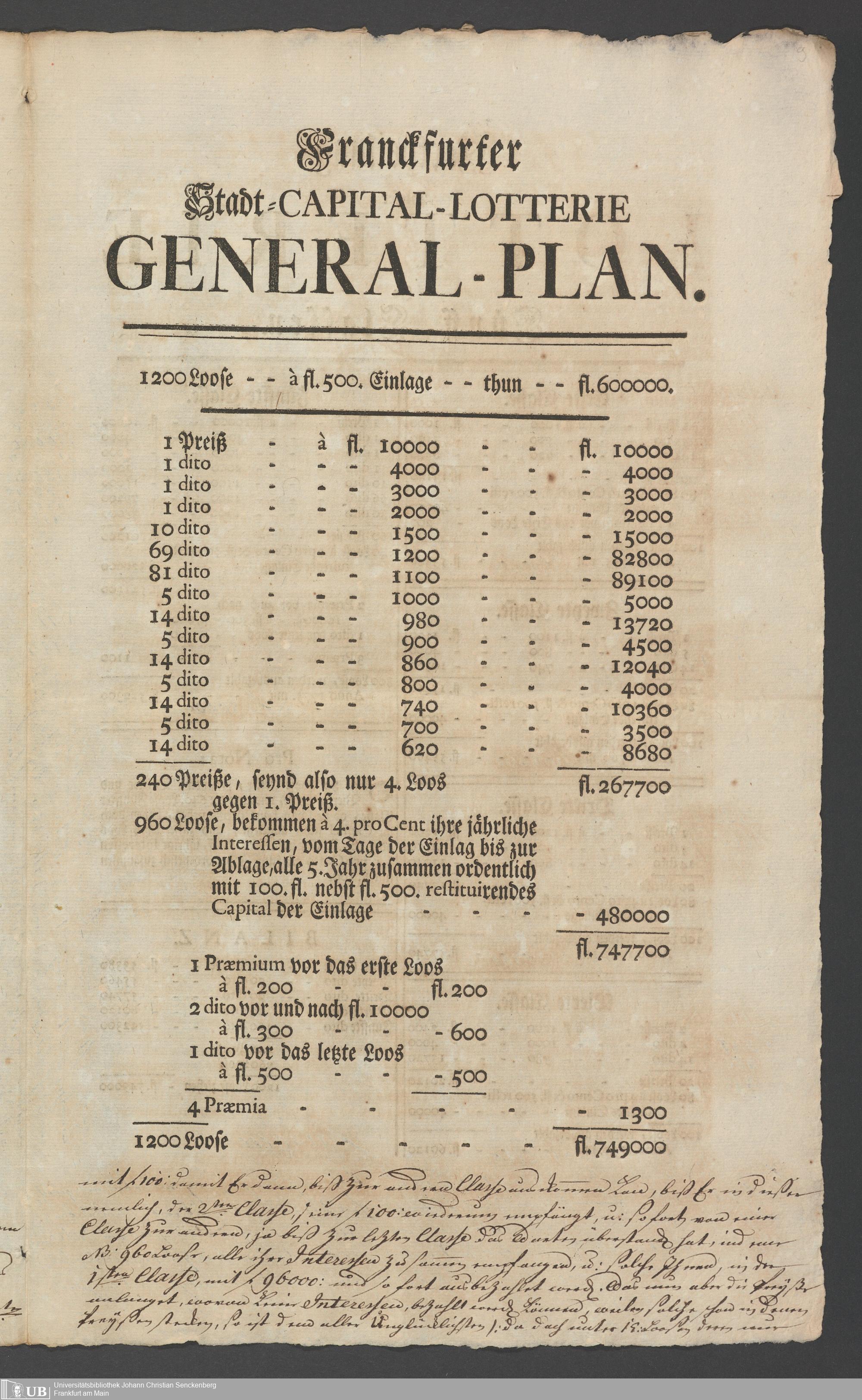 Na 31 Nachlass Johann Christian Senckenberg, 331 - Frankfurter Kapital-Lotterie