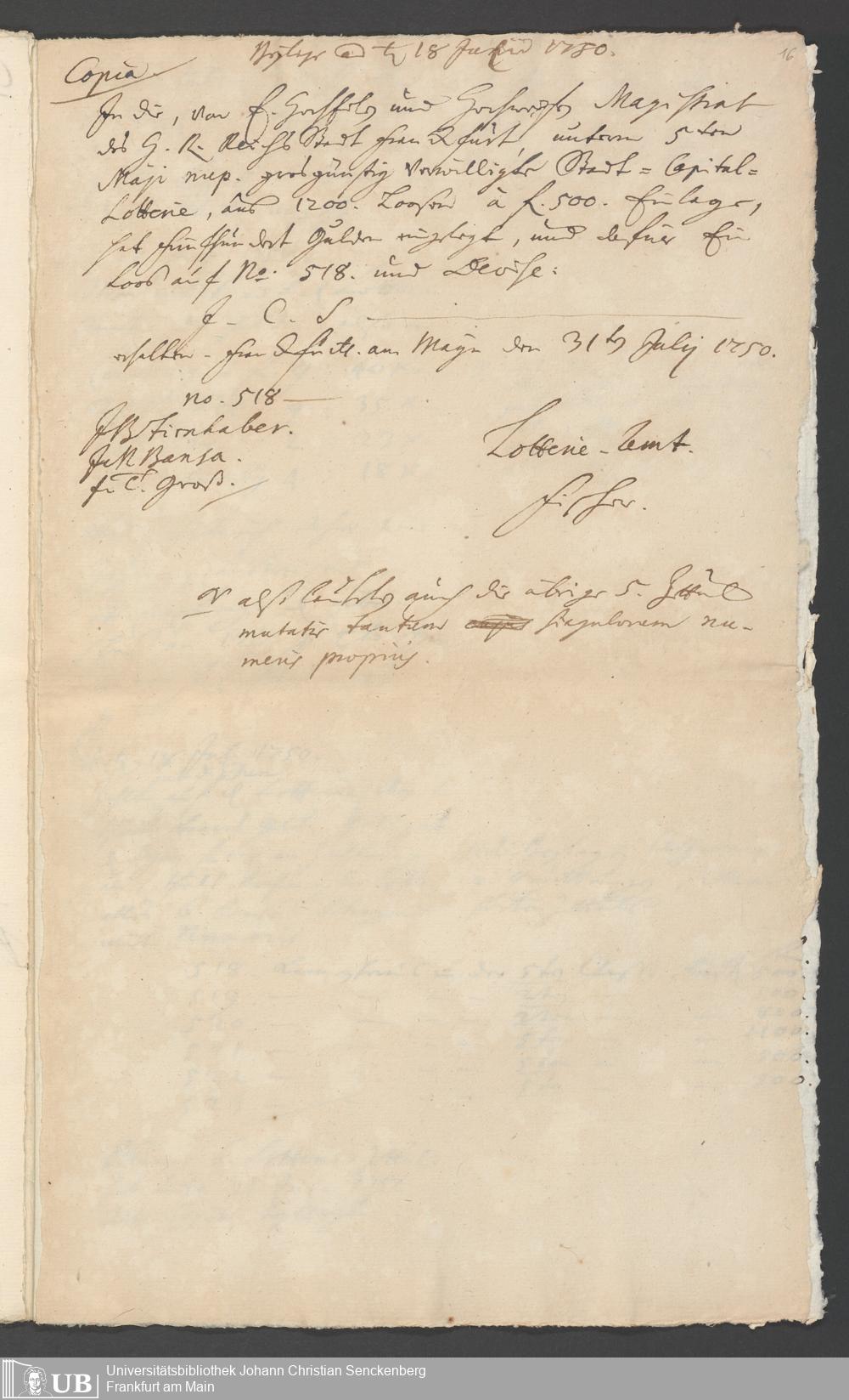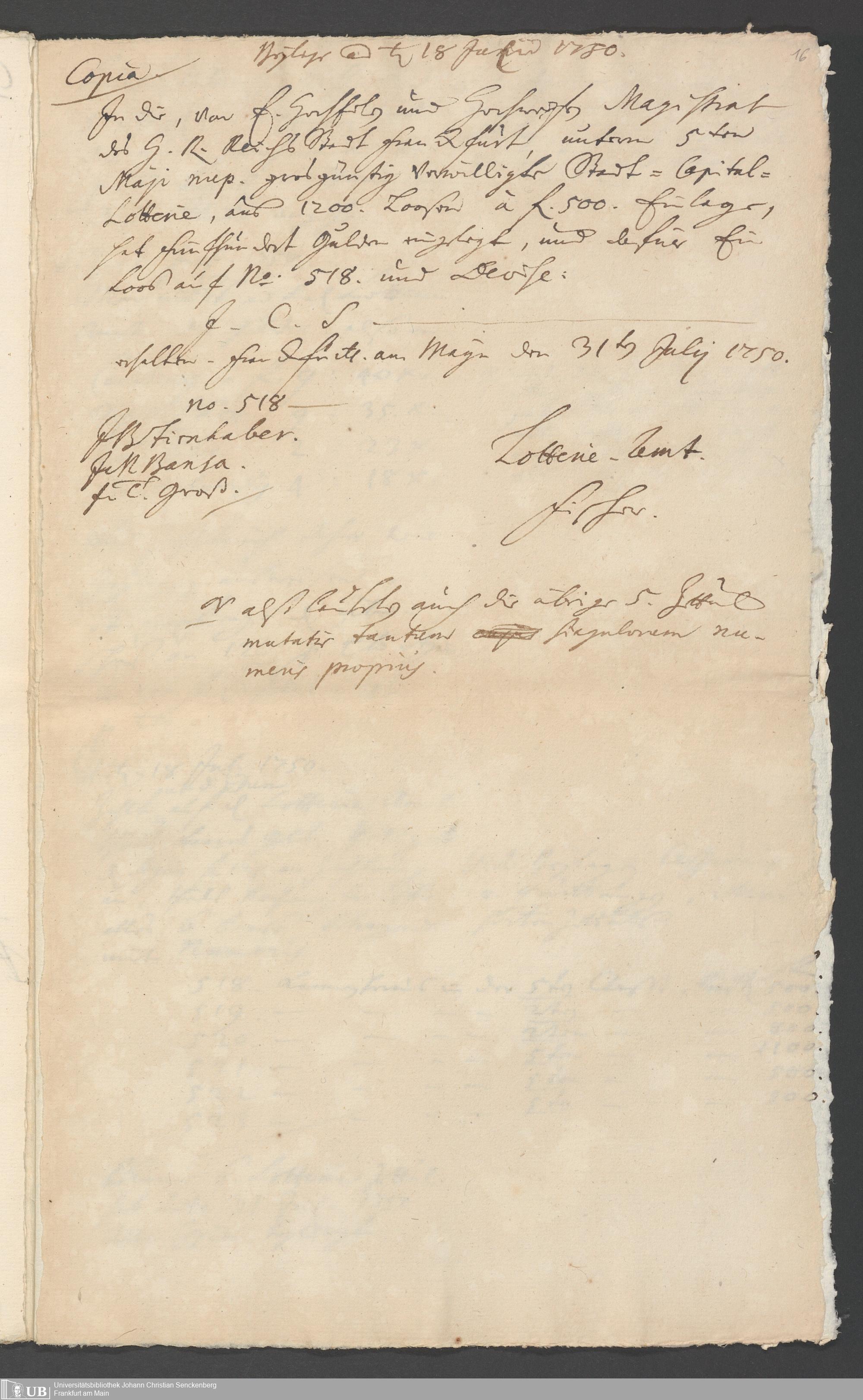 Na 31 Nachlass Johann Christian Senckenberg, 331 - Frankfurter Kapital-Lotterie