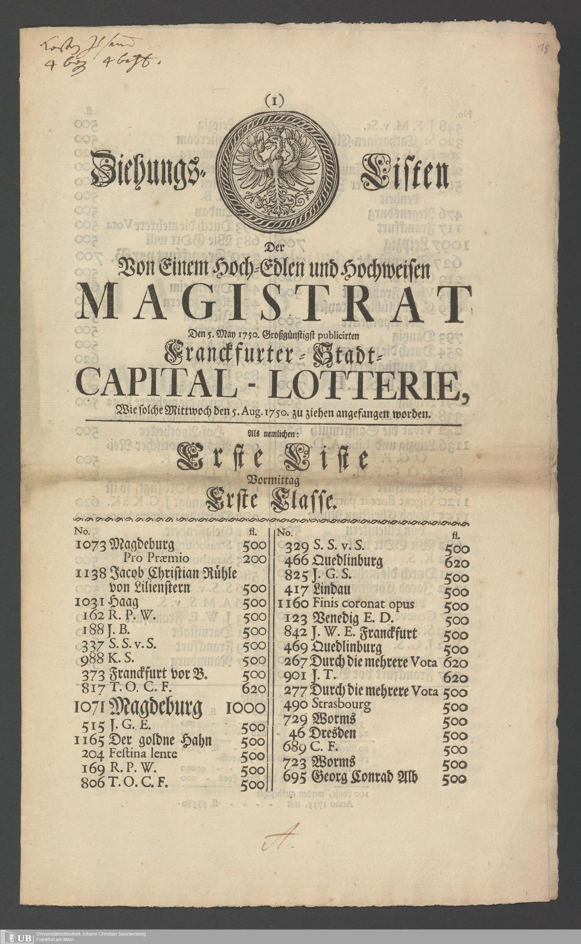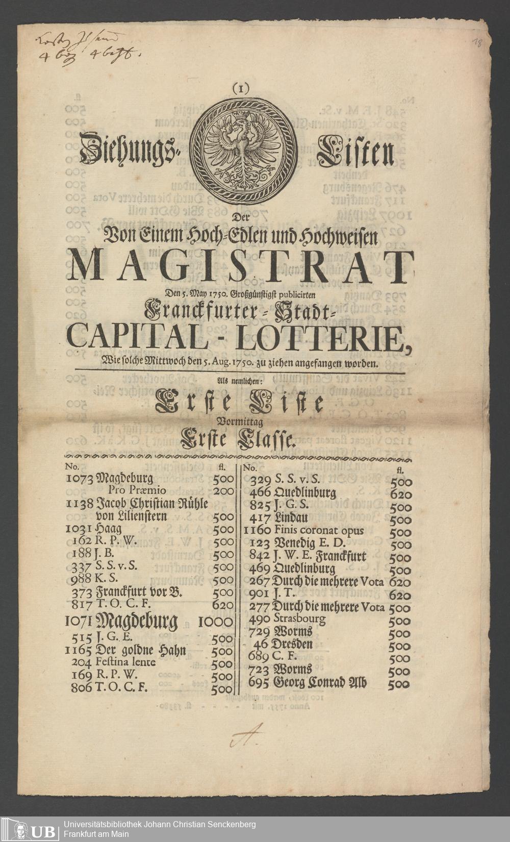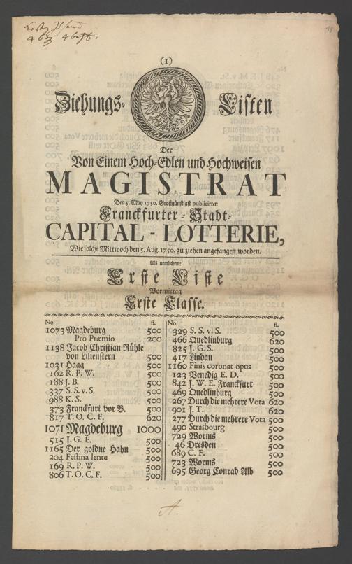 Na 31 Nachlass Johann Christian Senckenberg, 331 - Frankfurter Kapital-Lotterie