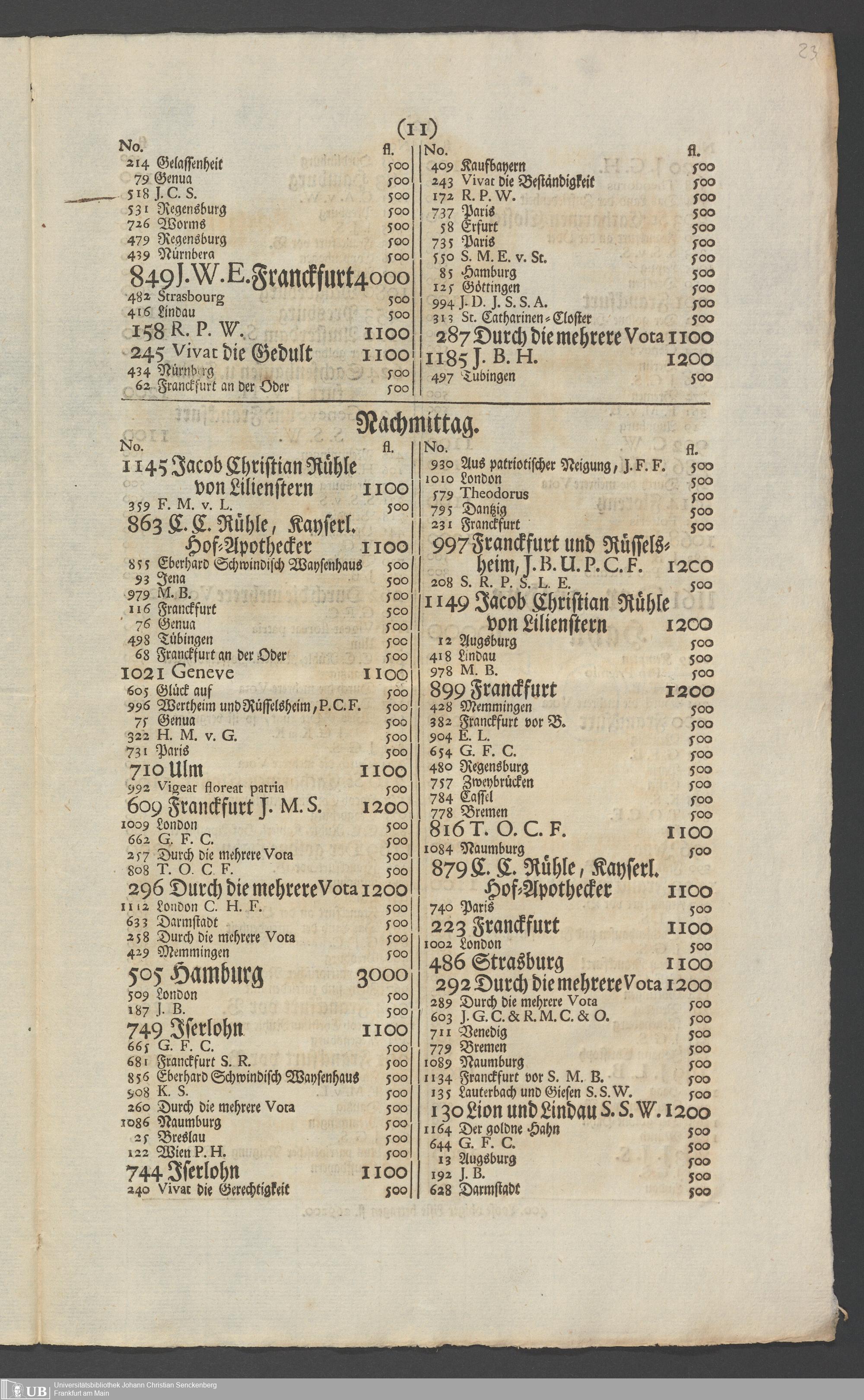 Na 31 Nachlass Johann Christian Senckenberg, 331 - Frankfurter Kapital-Lotterie
