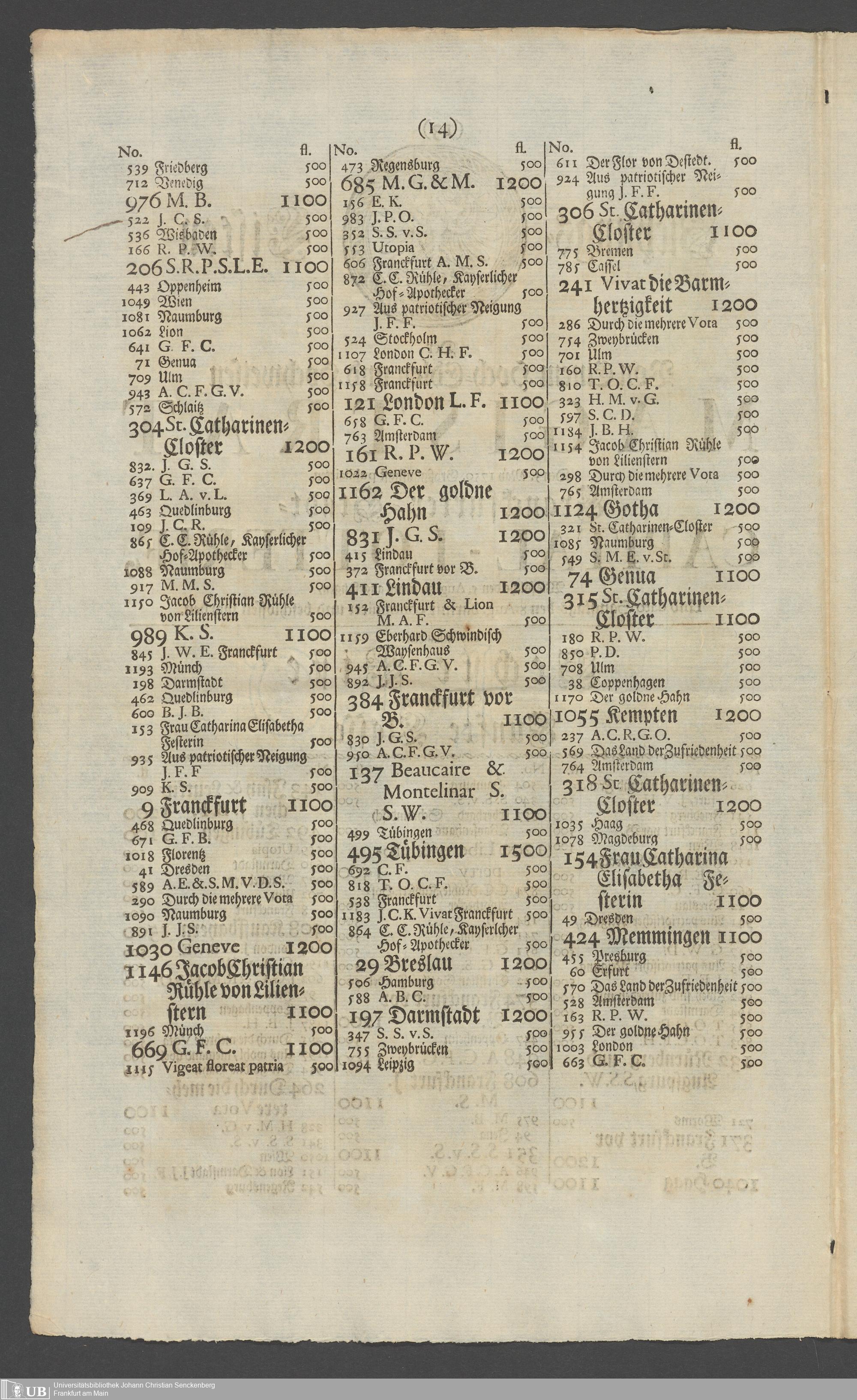 Na 31 Nachlass Johann Christian Senckenberg, 331 - Frankfurter Kapital-Lotterie
