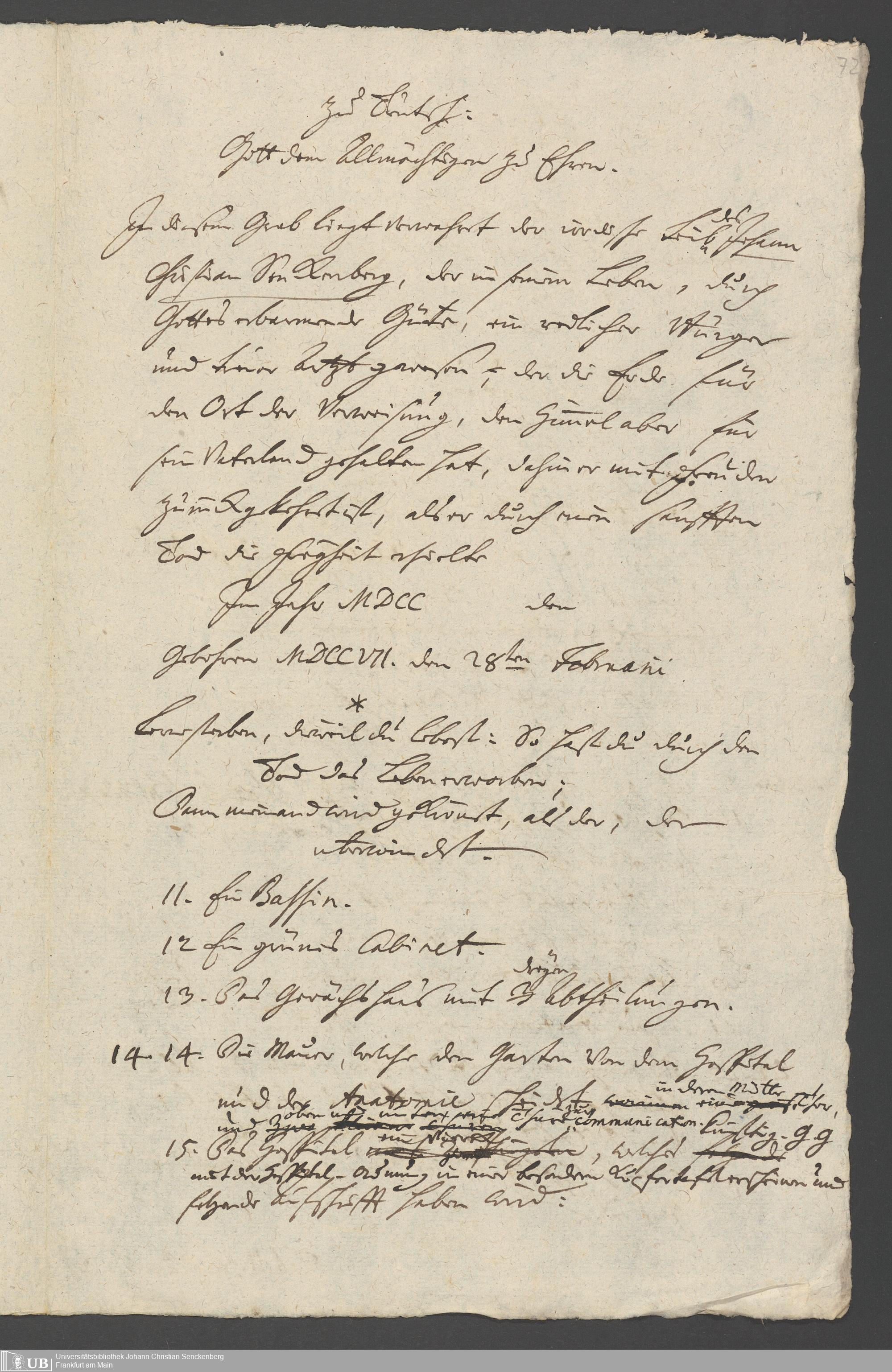 Na 31 Nachlass Johann Christian Senckenberg, 334 - Stiftungsbrief