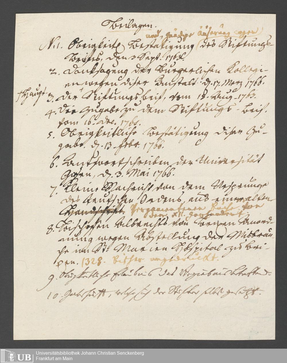 Na 31 Nachlass Johann Christian Senckenberg, 334 - Stiftungsbrief