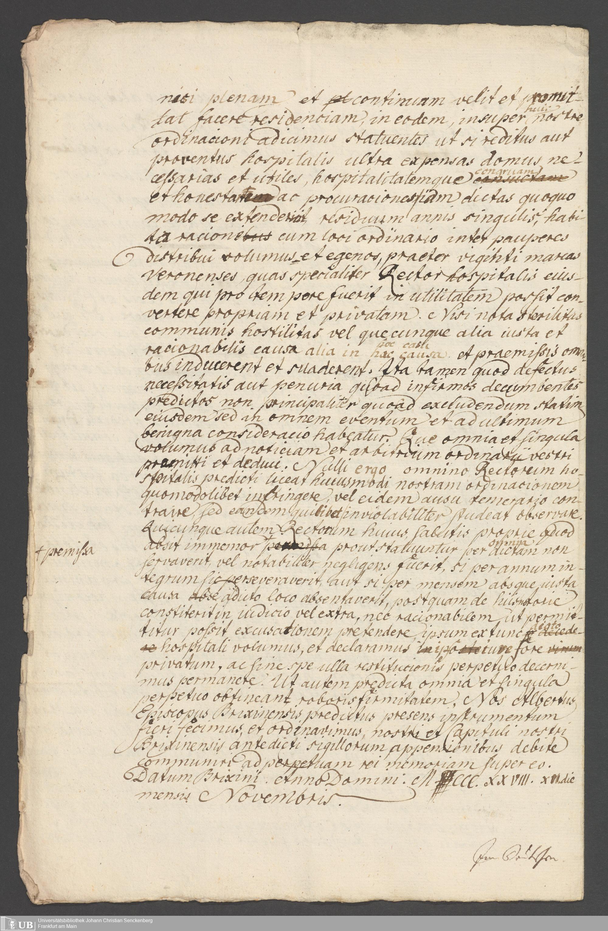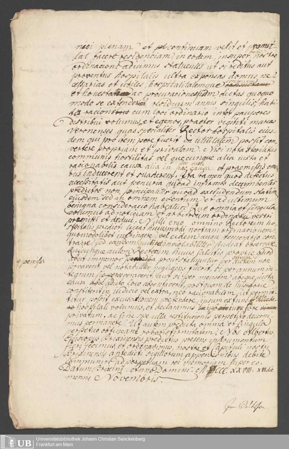 Na 31 Nachlass Johann Christian Senckenberg, 334 - Stiftungsbrief
