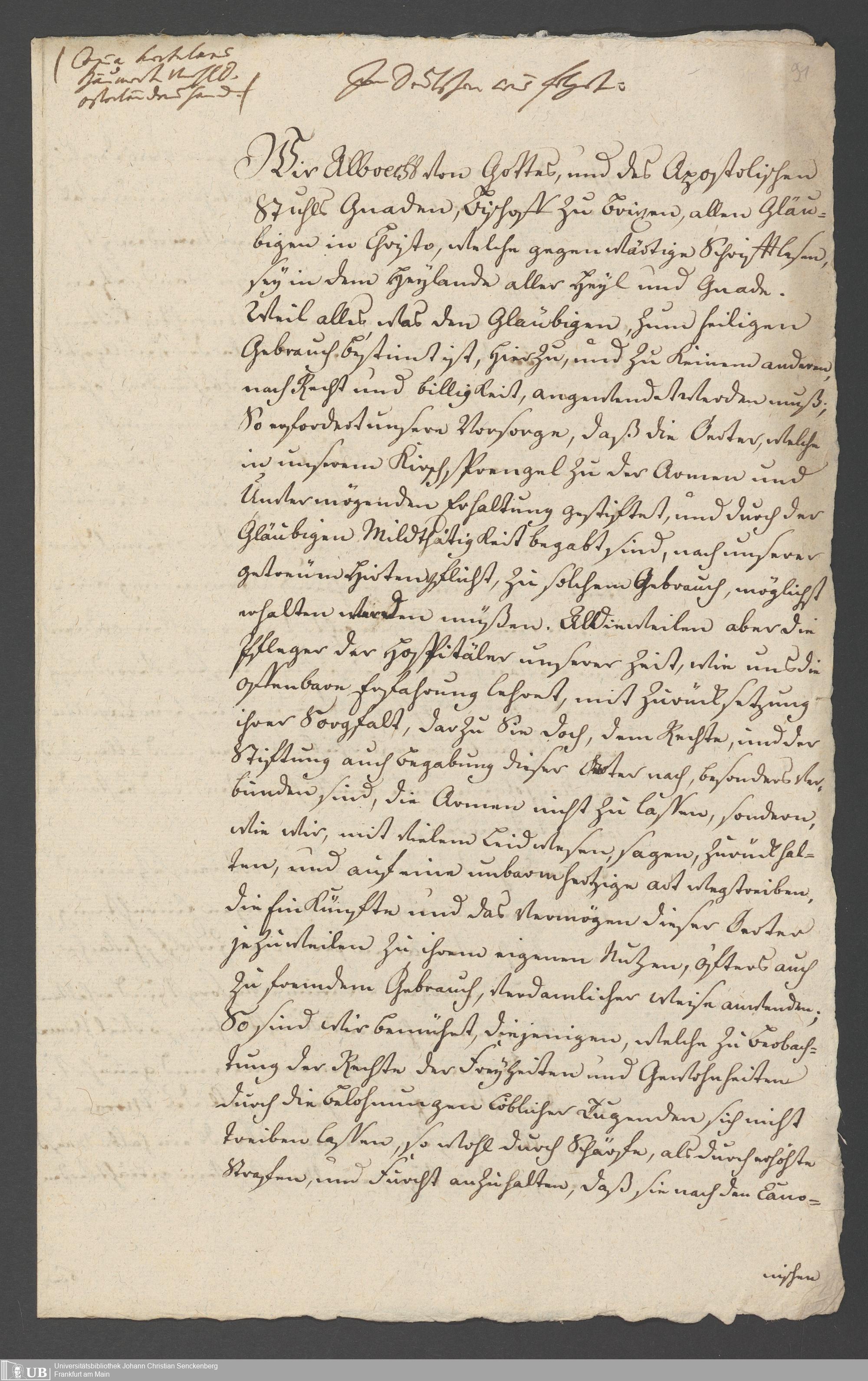 Na 31 Nachlass Johann Christian Senckenberg, 334 - Stiftungsbrief